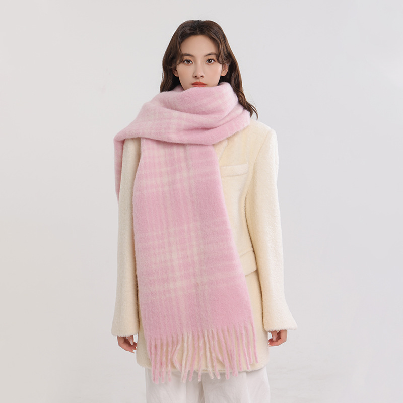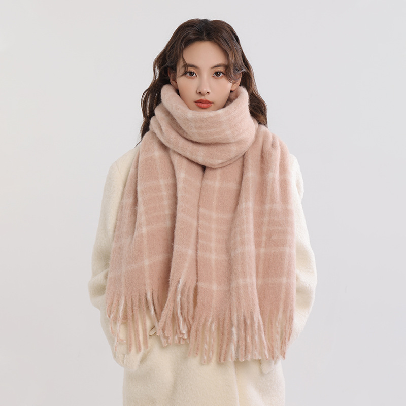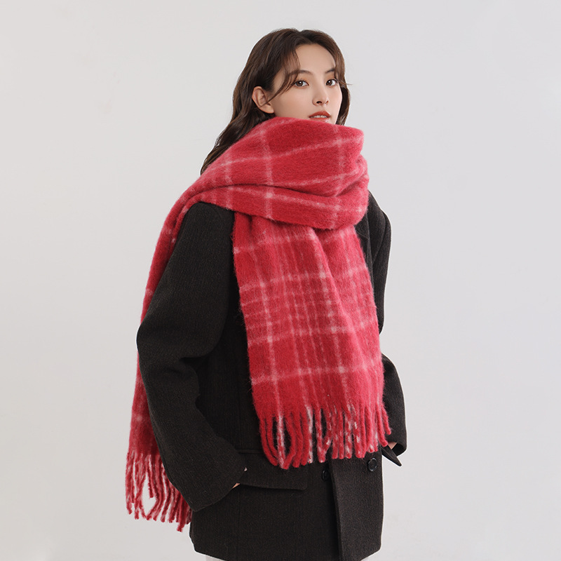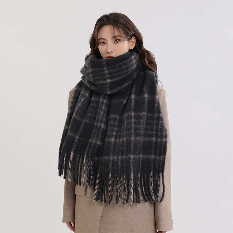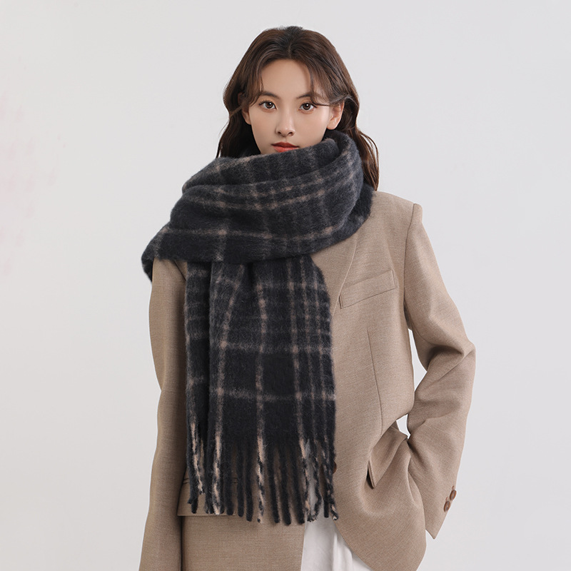 양모 올매치 플레이드 스카프 여자 겨울 2024 새 도착 한국식 올매치 스카프 커플의 따뜻한 목도리 남자 가을과 겨울