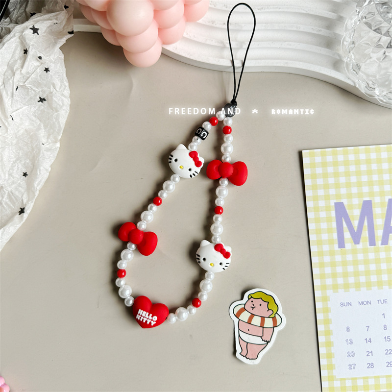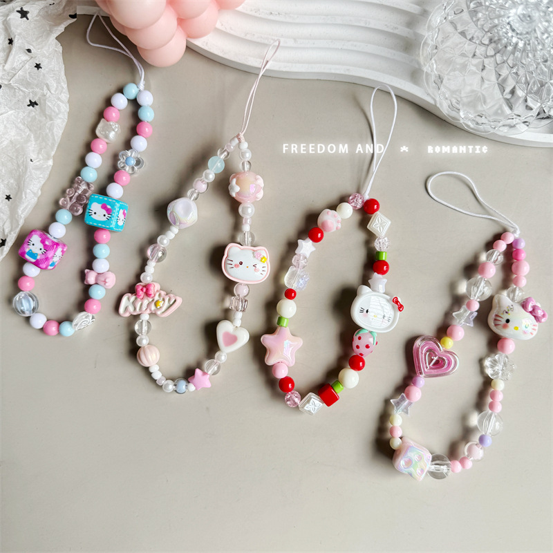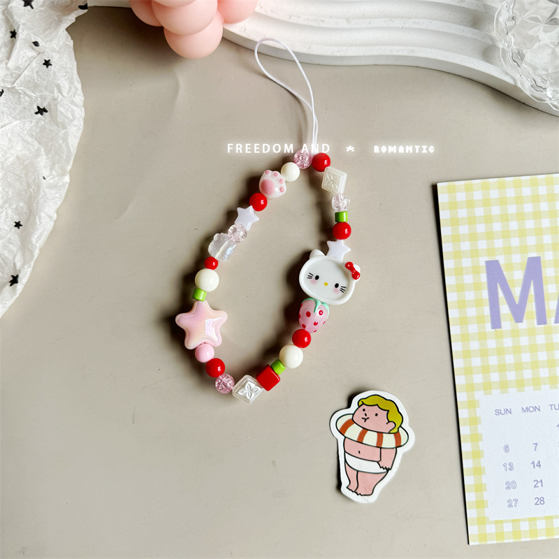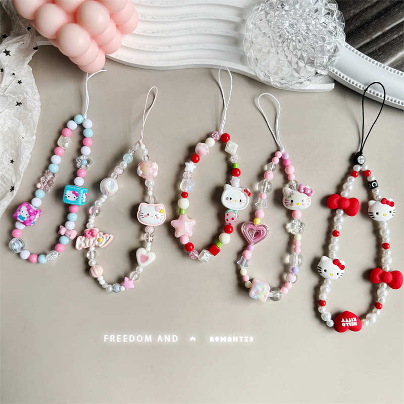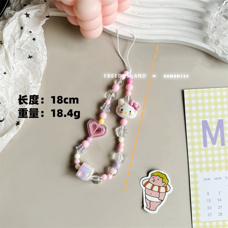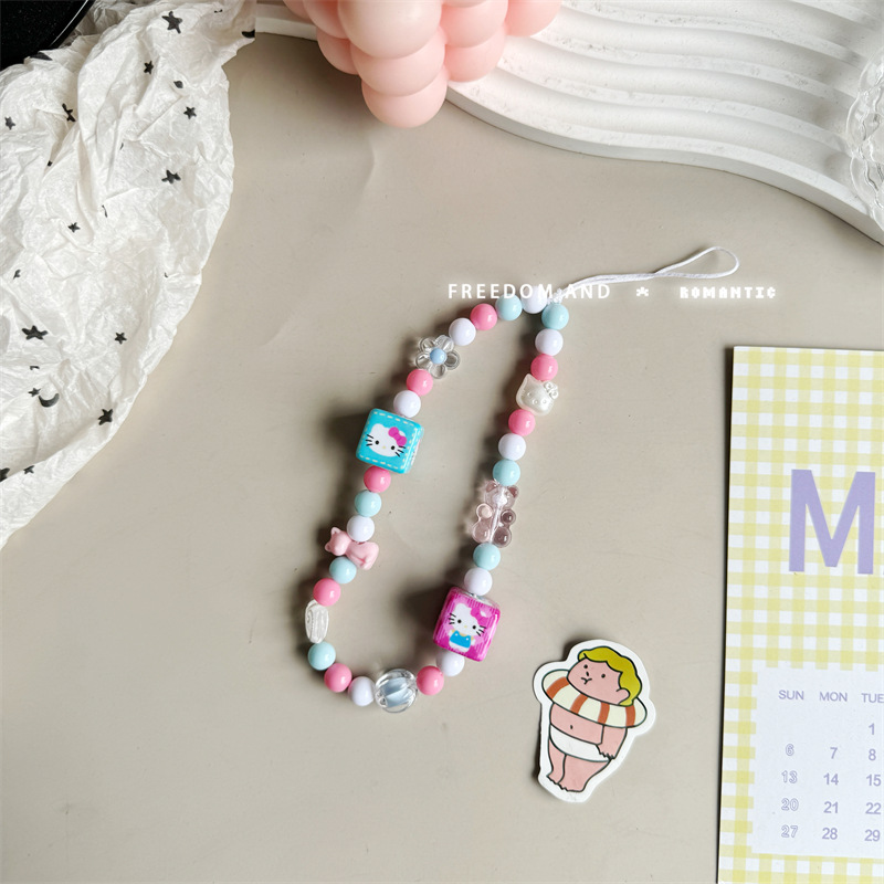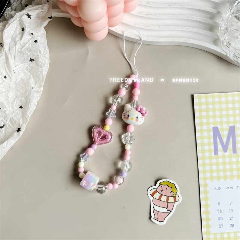 만화 키티 고양이 휴대 전화 끈 체인 ccd 카메라 펜던트 가방 DIY 수제 구슬 창조적 인 체인 펜던트스토어 가기