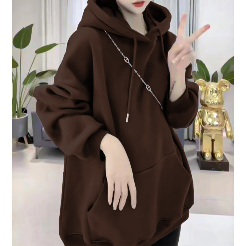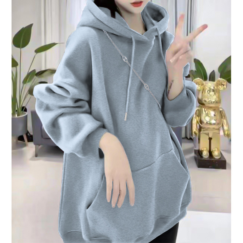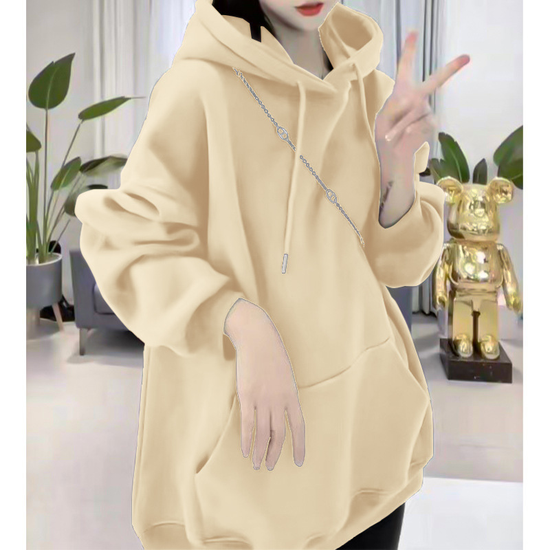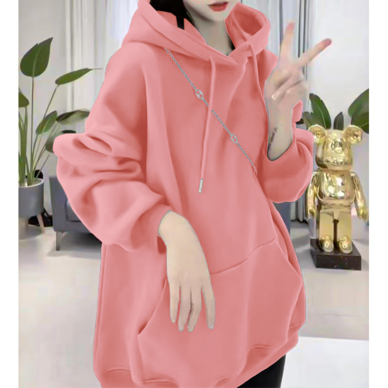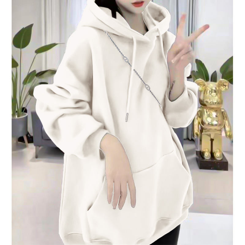 단색 캐주얼 후드 스웨트 셔츠 여성용 오버 사이즈 올 매치 솔리드 컬러 봄과 가을 슬림 룩 유행 얇은 코트 탑스토어 가기