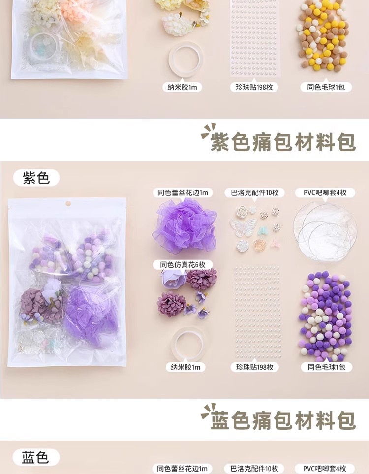 • 흰색(보라색 통증 가방 재료 패키지*1+타이 보드*1)