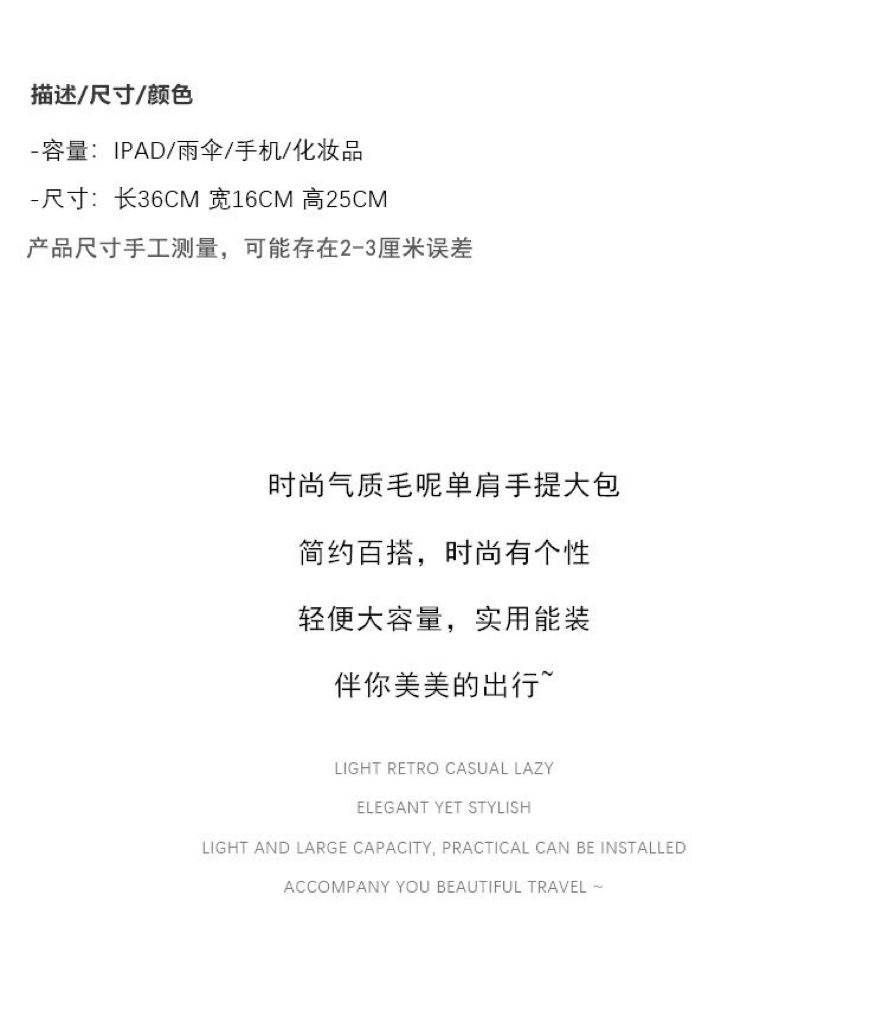 가을과 겨울 새로운 작은 가치의 여성 가방 유행 우아한 모직 어깨 손 가방 간단한 올 매치 배낭