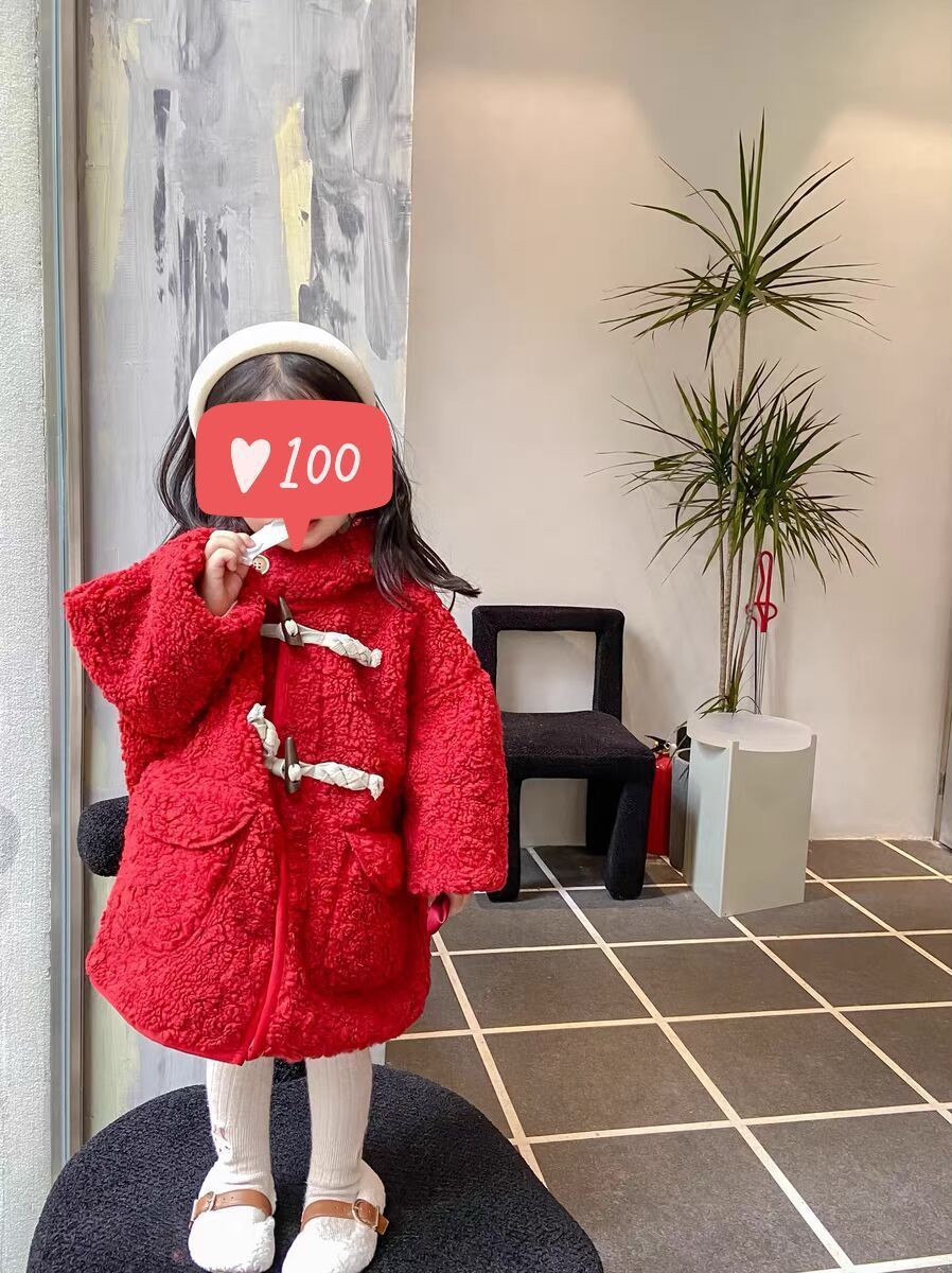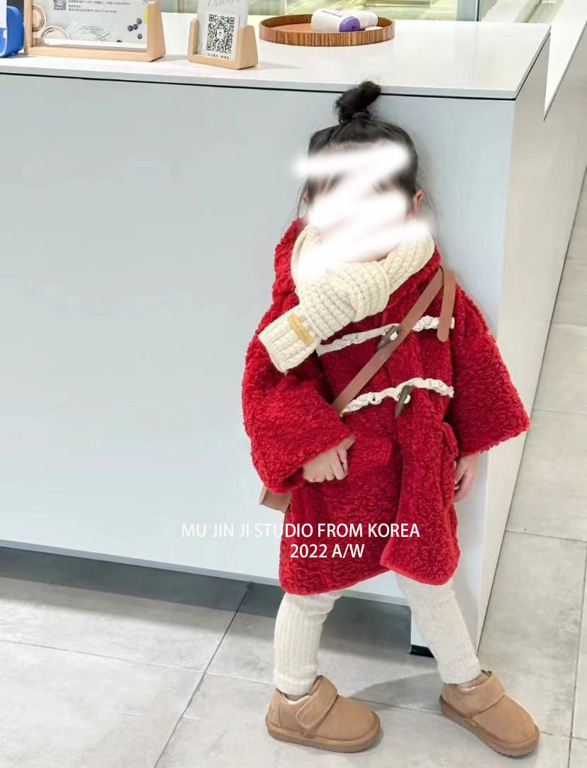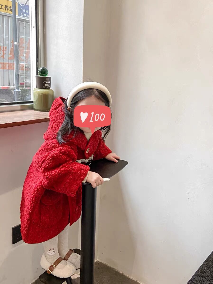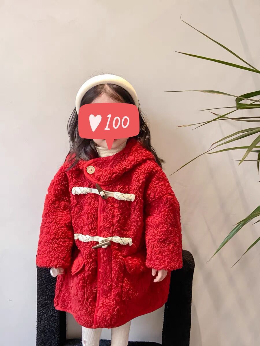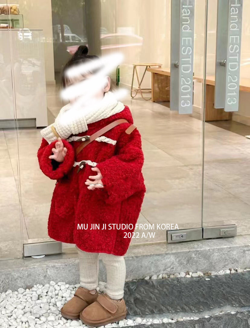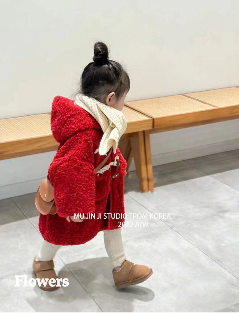 여아 양털 코트 가죽과 모피 일체형 2025 겨울 한국 스타일 어린이 후드 중간 길이 코트 털이 많은스토어 가기