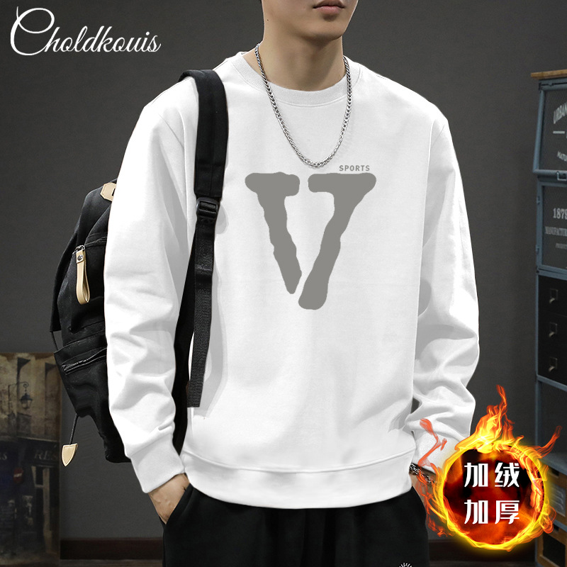 • 화이트 라운드넥 스웨트셔츠 플러스 플리스 스타일-1618【GL】