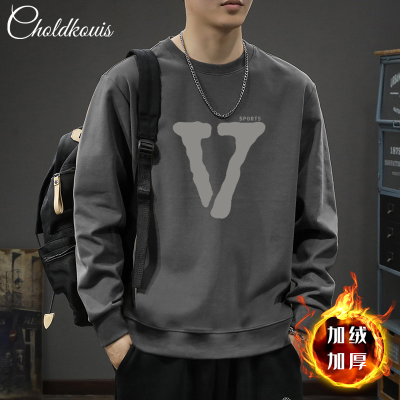 • 벨벳스타일 다크그레이 라운드넥 스웨트셔츠-1618【GL】