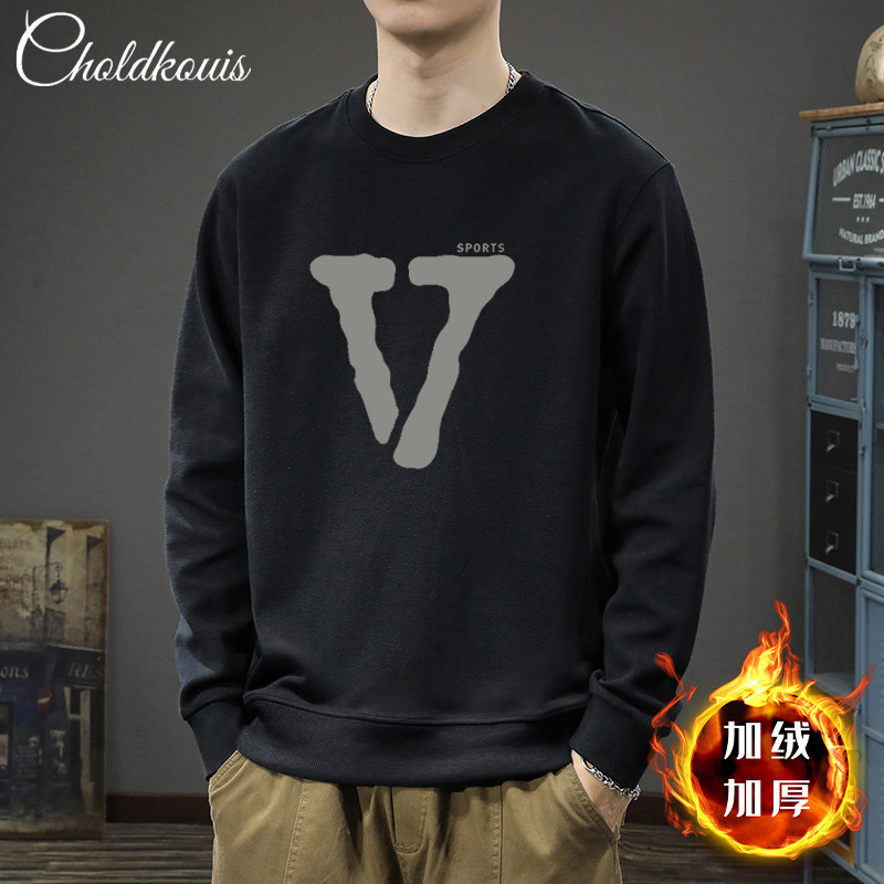 • 블랙 라운드넥 스웨트셔츠 플러스 플리스 스타일-1618【GL】