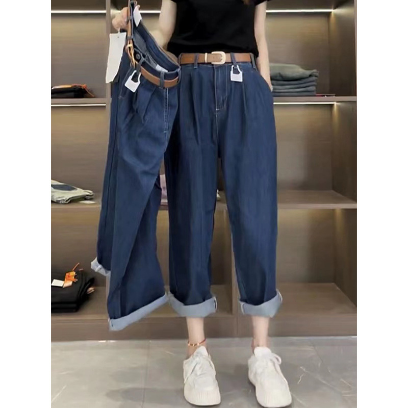 플러스 사이즈 스트레치 할란 청바지 여성의 가을과 겨울 느슨한 슬리밍 높은 허리 자른 스트레이트 와이드 다리 바지스토어 가기
