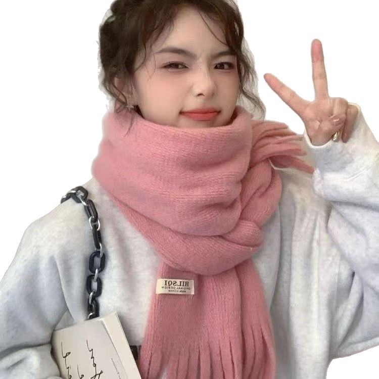 한국식 솔리드 컬러 술 소프트 왁스 레드 스카프 여자 가을 겨울 기모 두꺼운 올매치 커플 학생 따뜻한 목