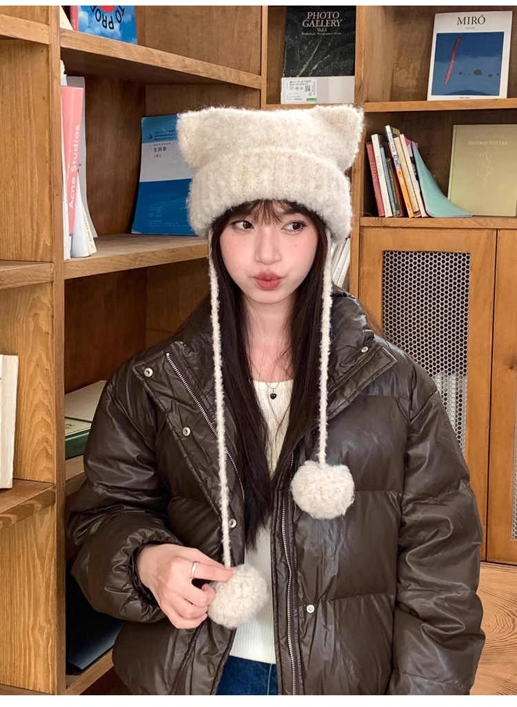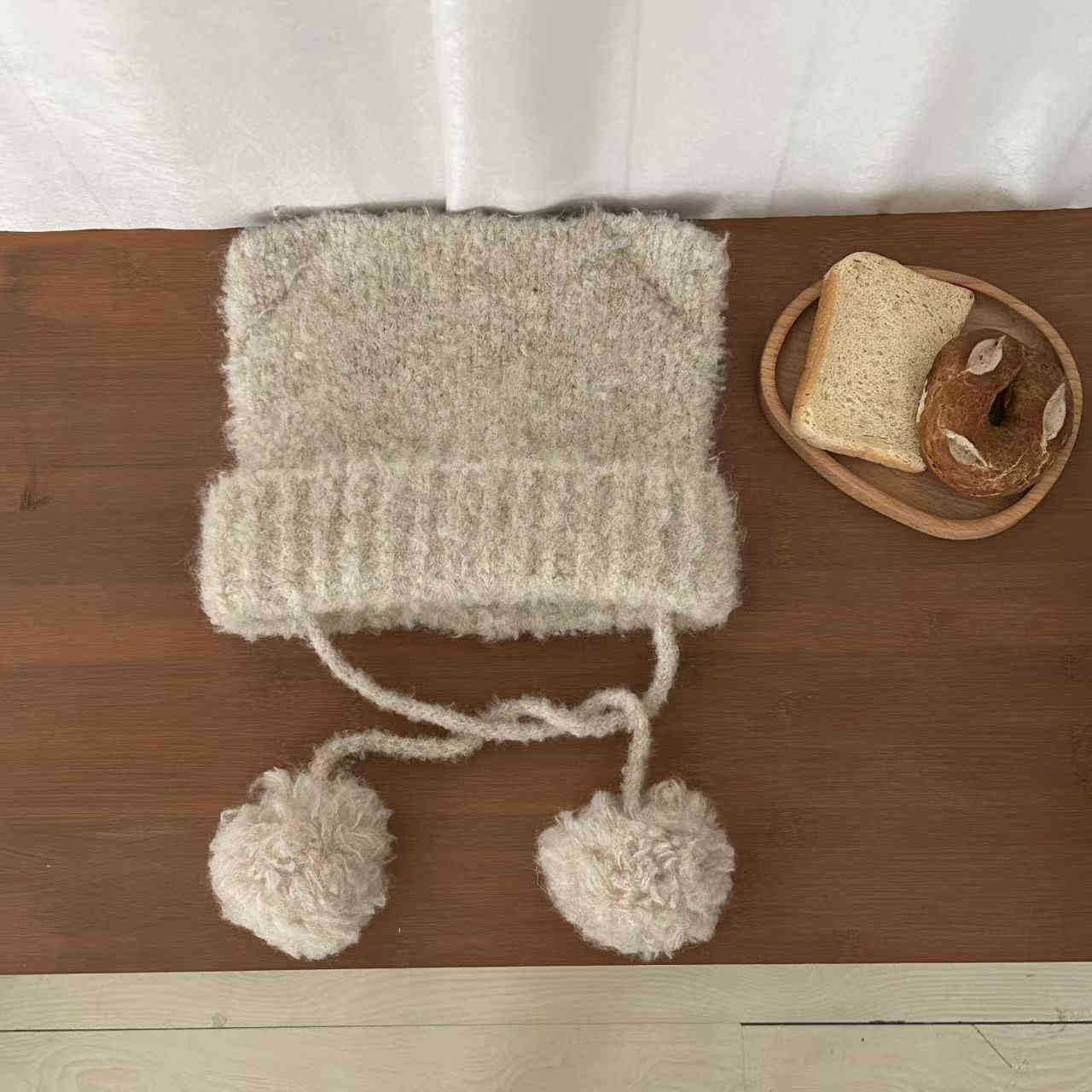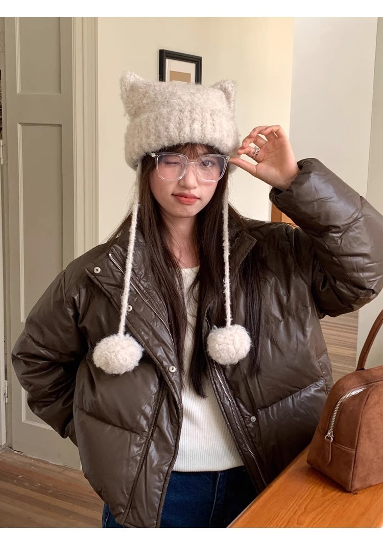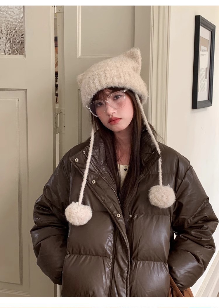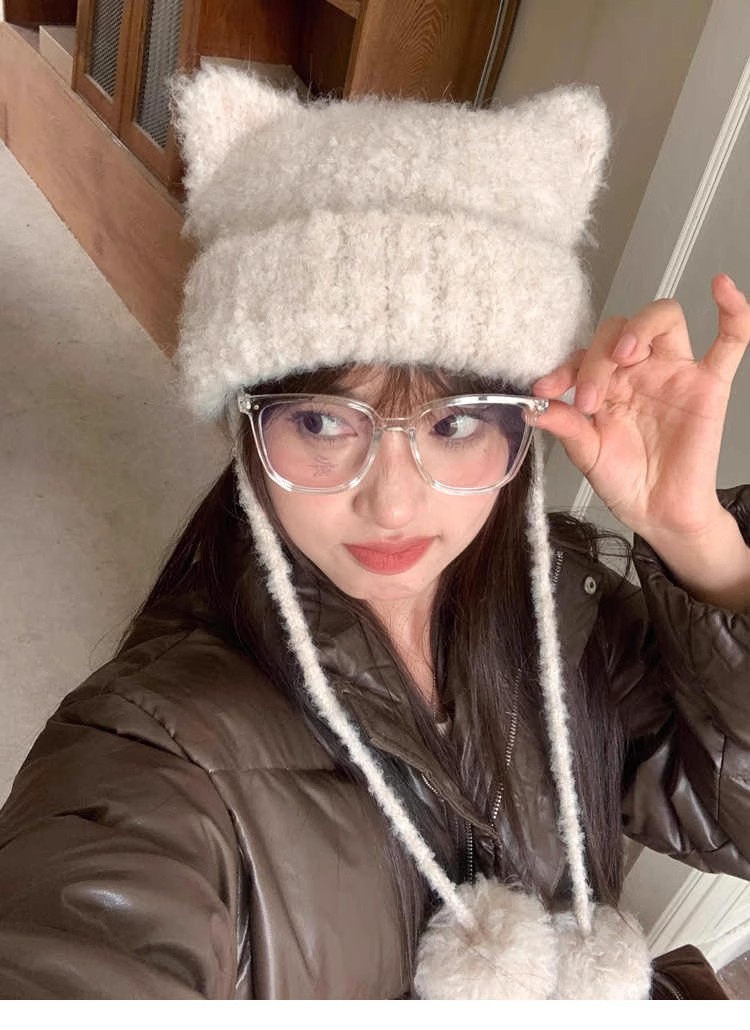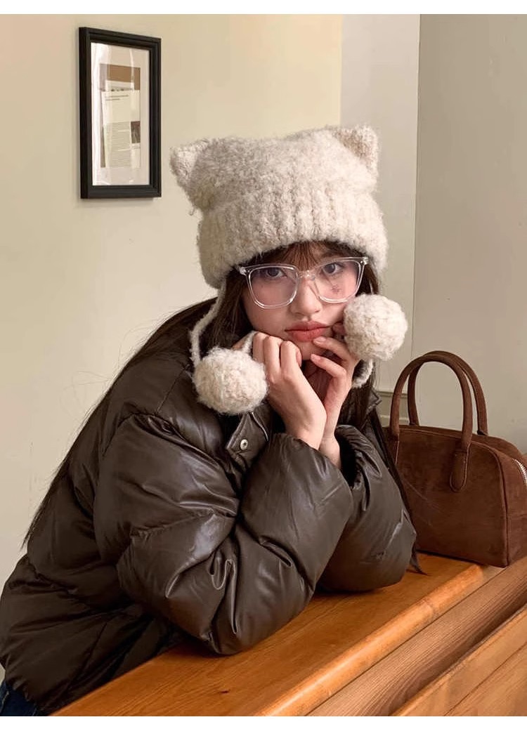 귀여운 모피 공 고양이 귀 모자 어린이 가을과 겨울 모피 귀 보호 모자 따뜻한 사이클링 방풍 니트 모자스토어 가기