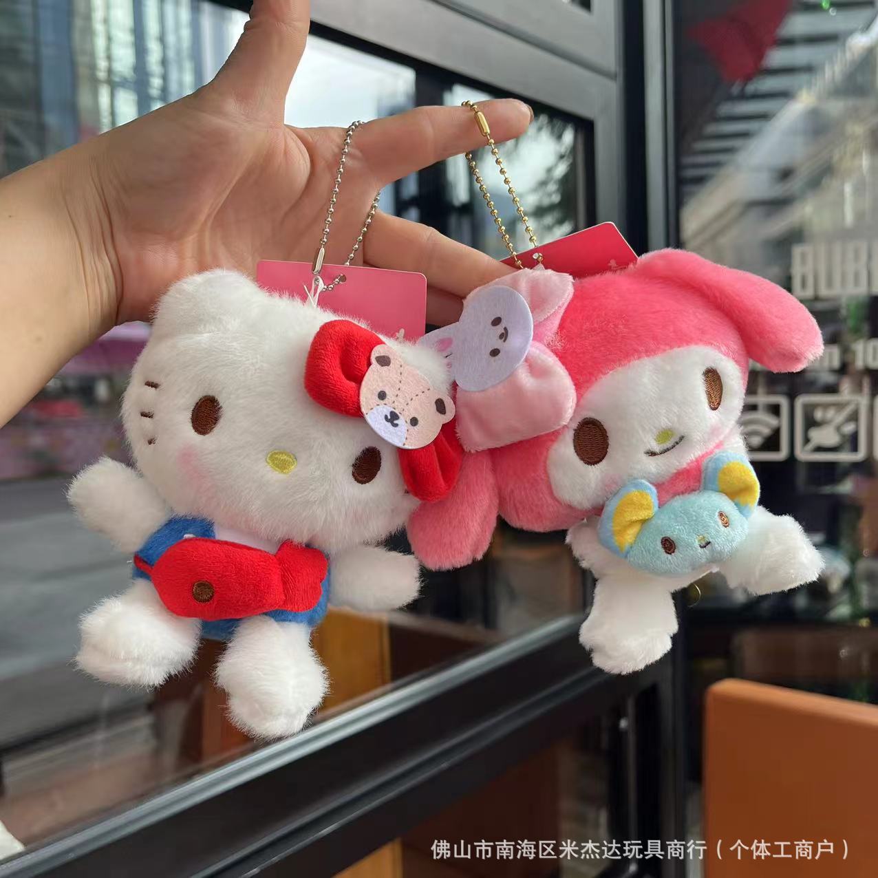 재고 귀여운 산리오 쇼핑 Kulomi Meruti Gui Dog KT 고양이 봉제 인형 가방 펜던트 잡기 아기 기계스토어 가기
