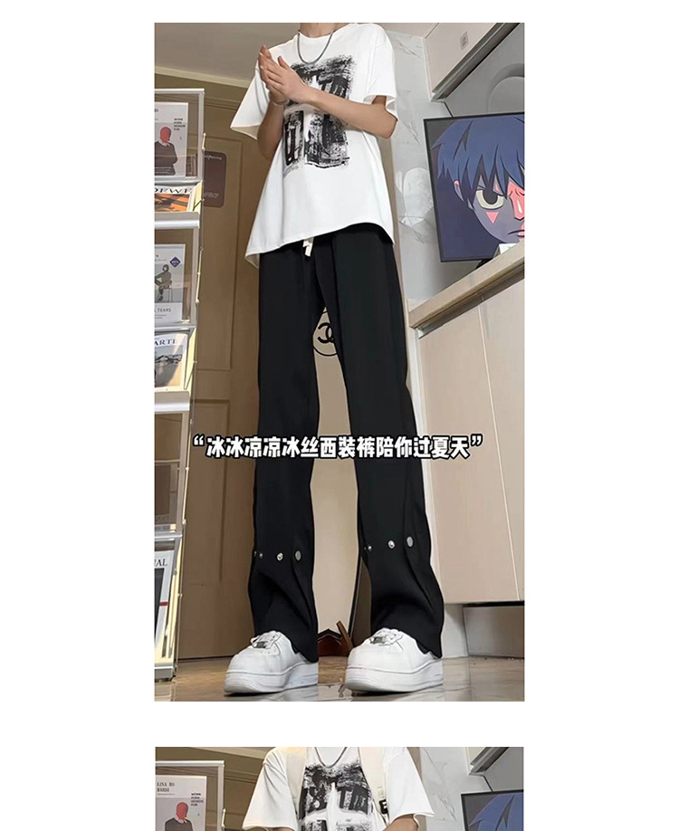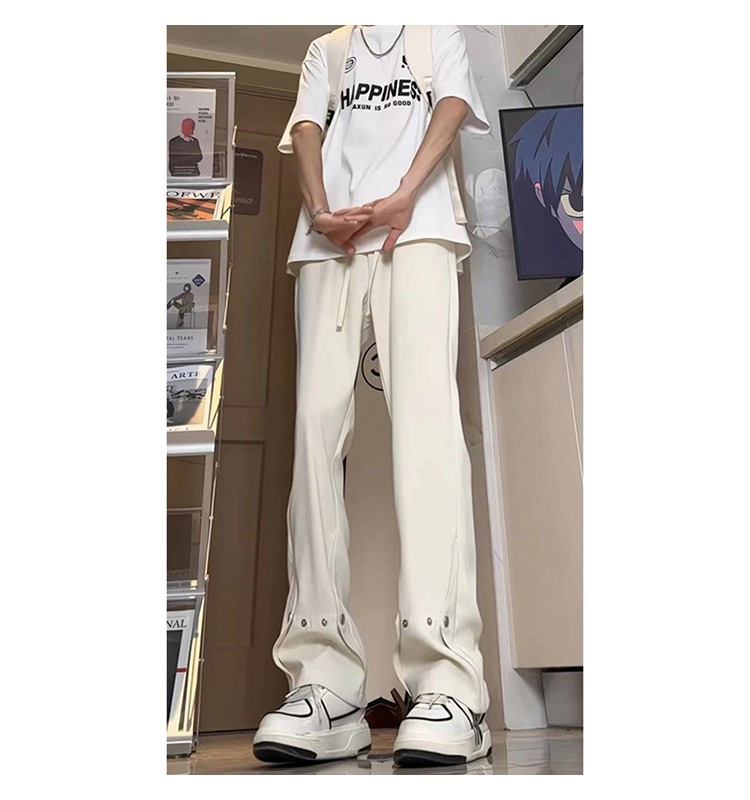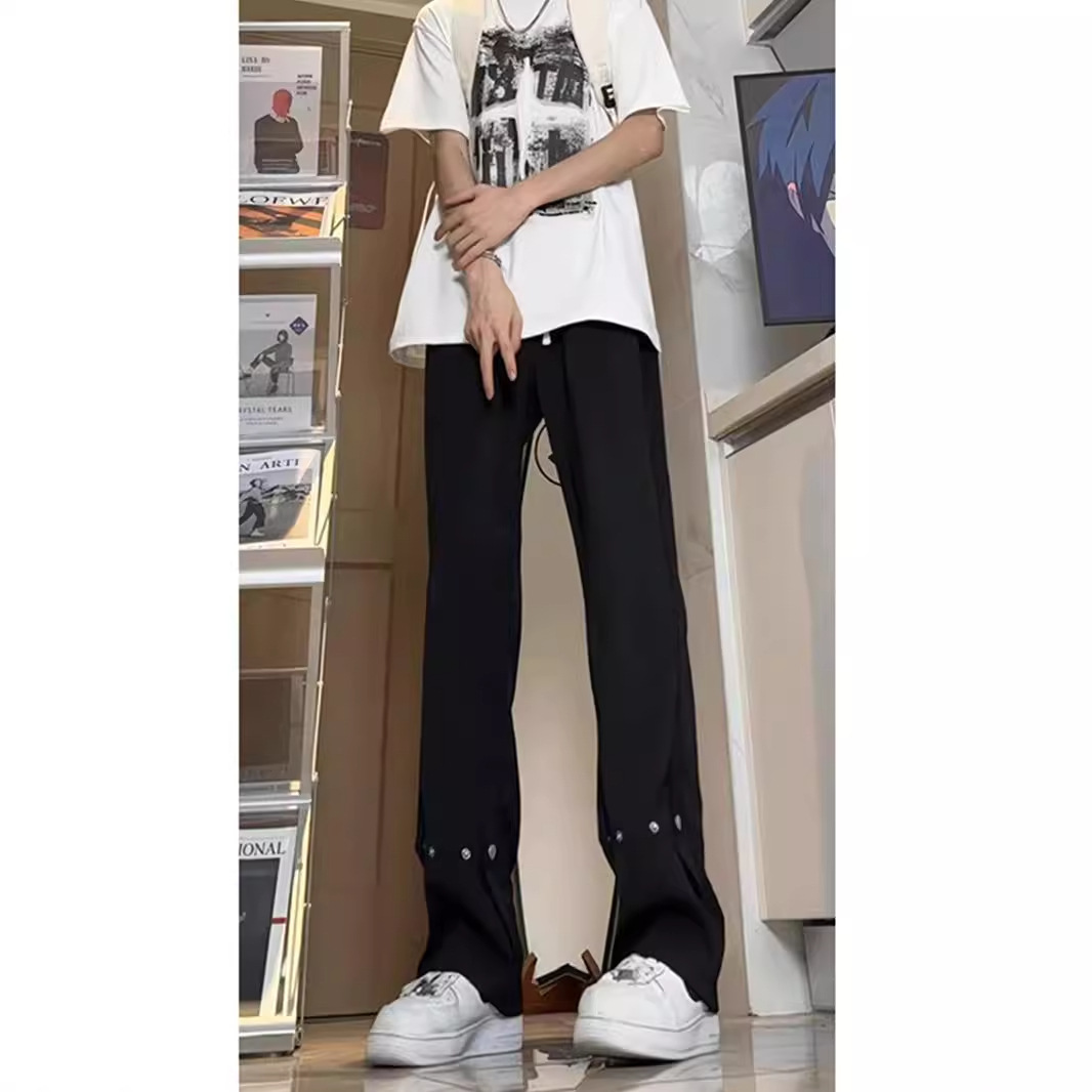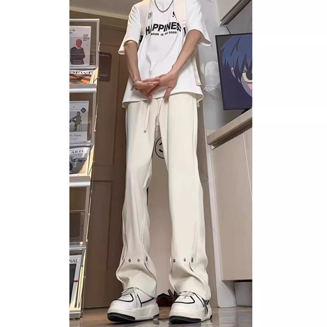 아이스 실크 버클 캐주얼 바지 남성용 가을 얇은 마이크로 락시 바지 미국식 하이 스트리트 힙합 유피 핸섬 긴 바지