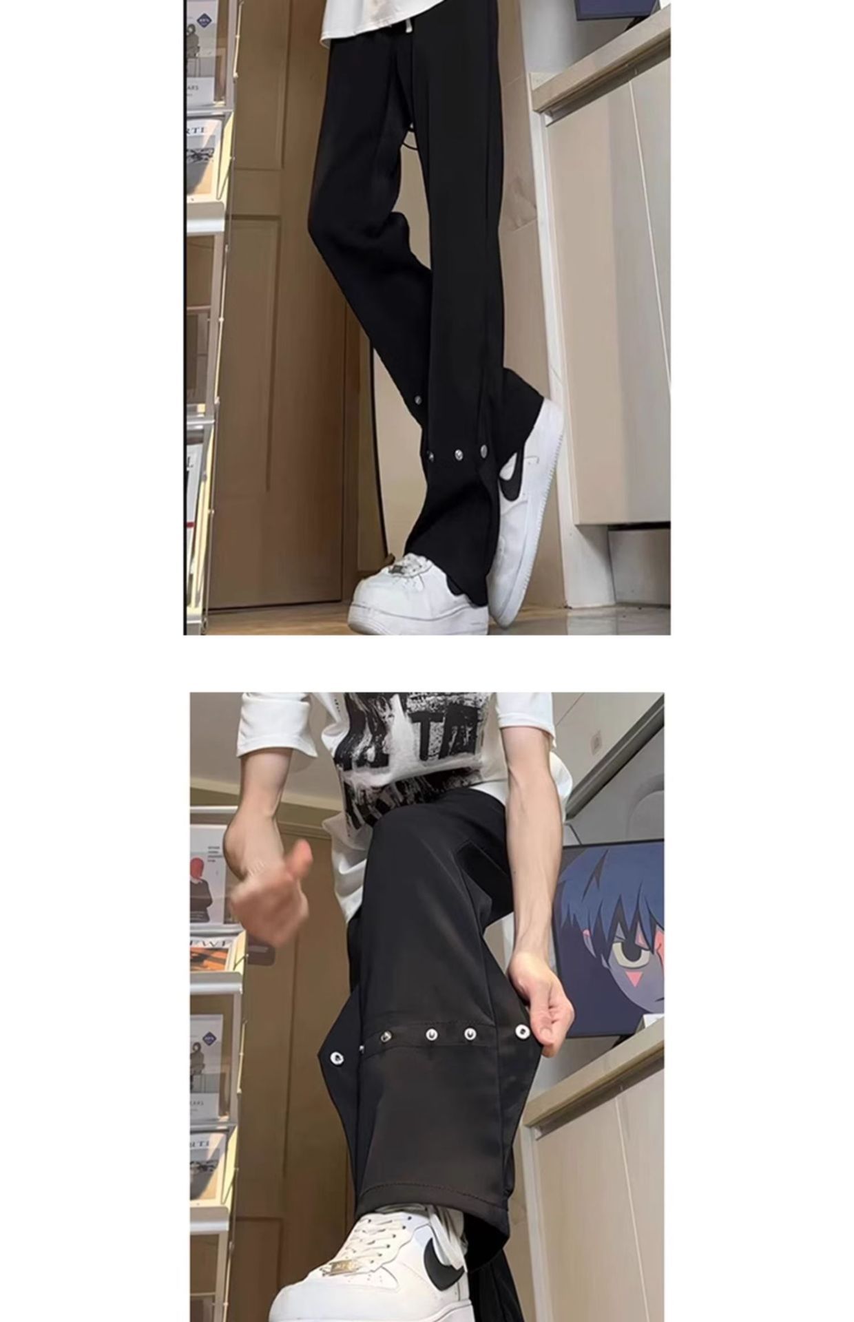 아이스 실크 버클 캐주얼 바지 남성용 가을 얇은 마이크로 락시 바지 미국식 하이 스트리트 힙합 유피 핸섬 긴 바지스토어 가기