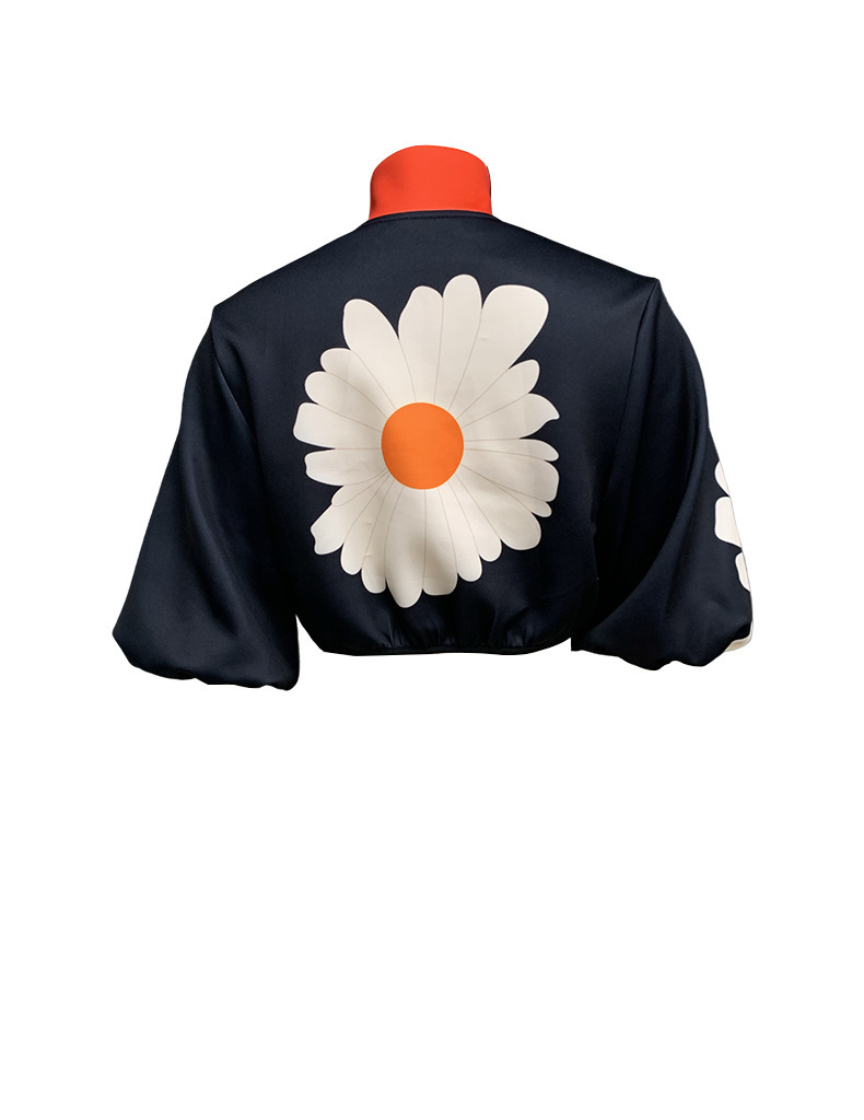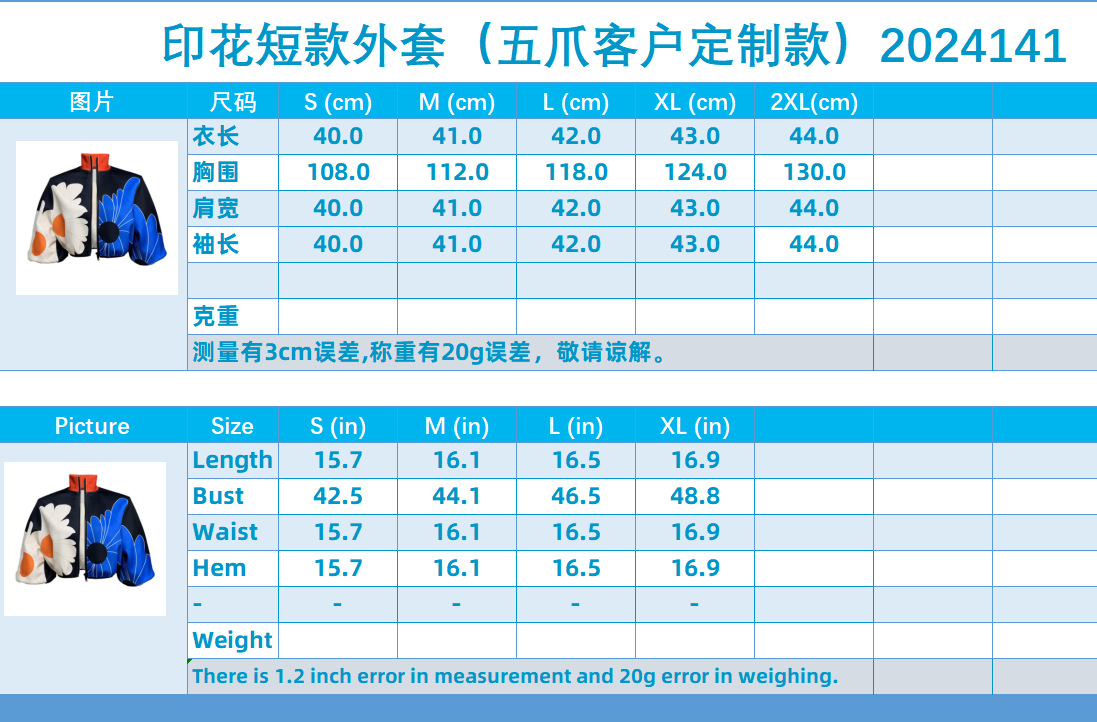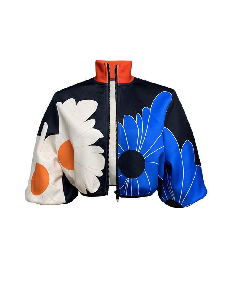 유럽과 미국 2024 봄과 가을 새로운 자켓 최고 여성 패션 우아한 큰 꽃 인쇄 짧은 자켓스토어 가기