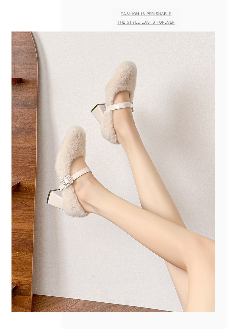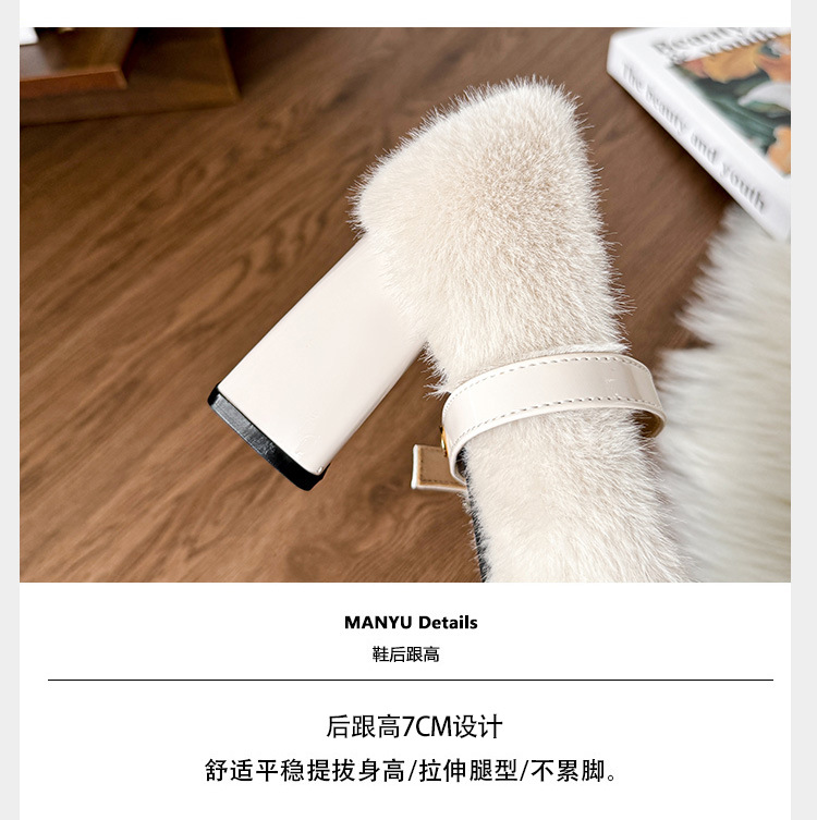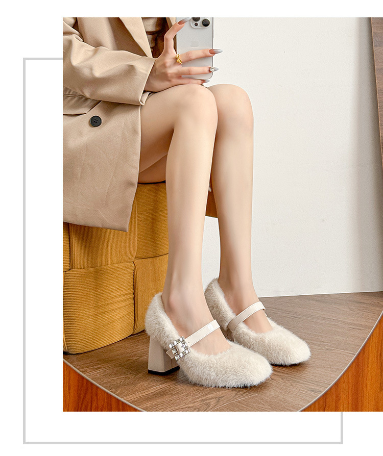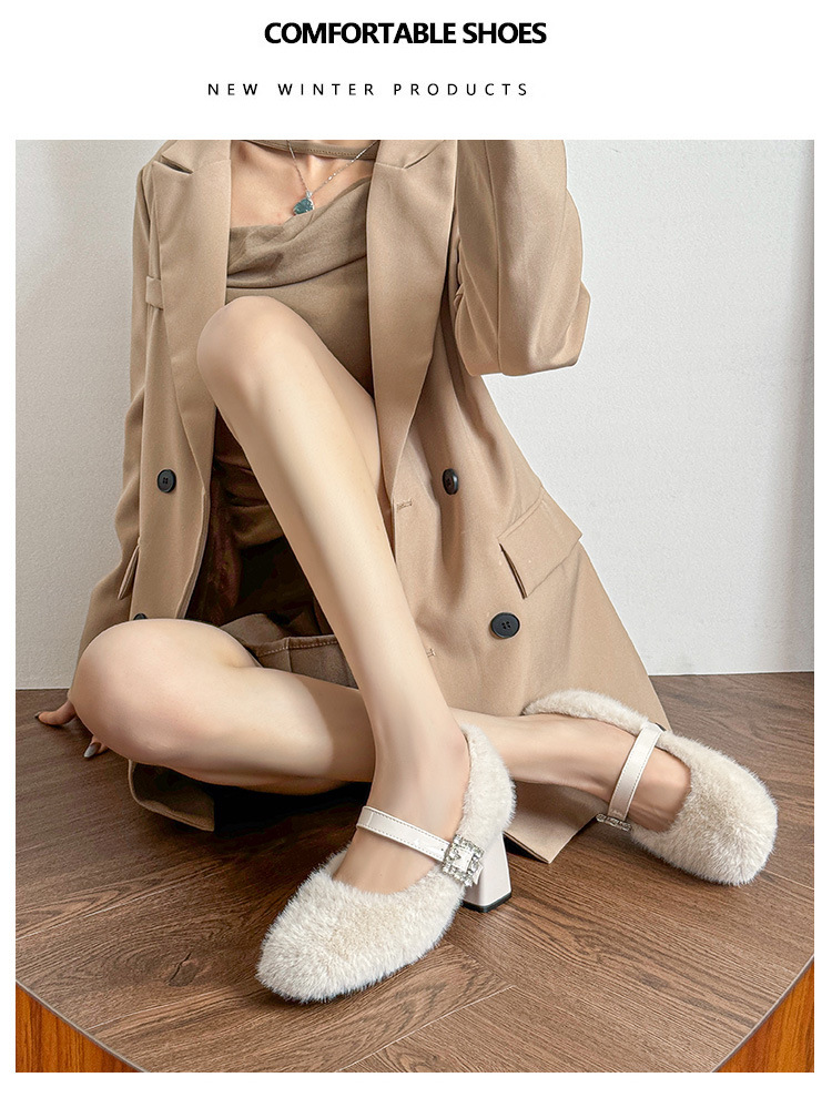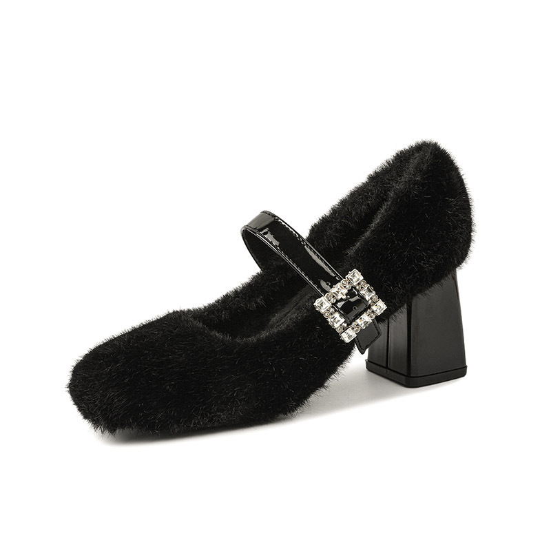 X601-b1 가을 겨울 기모 마오 마오 신발 하이힐 기질 신발 따뜻한 외부 착용 2024 새로운 하이힐 메리 제인 거친스토어 가기