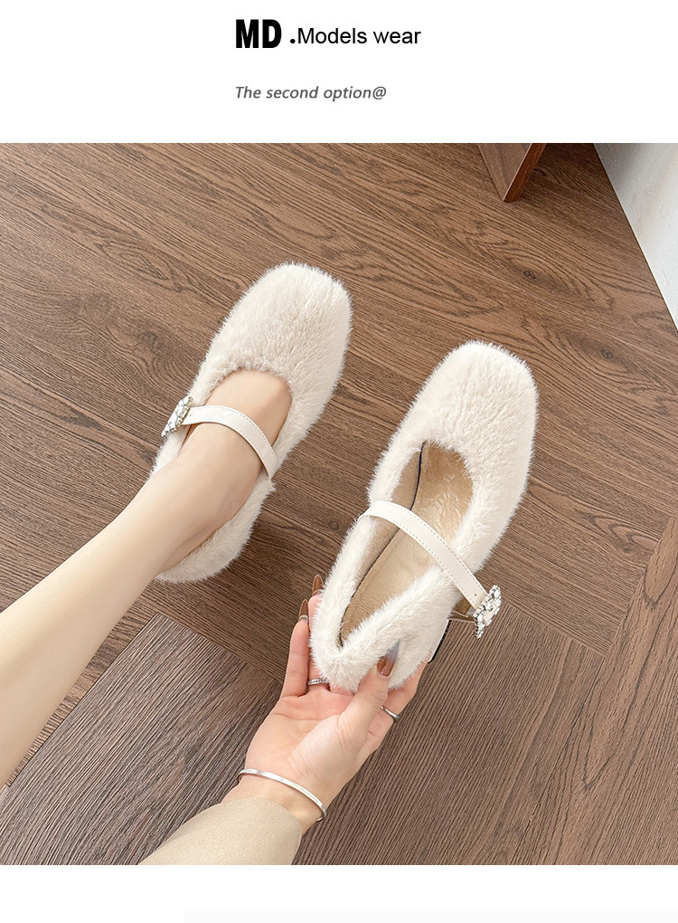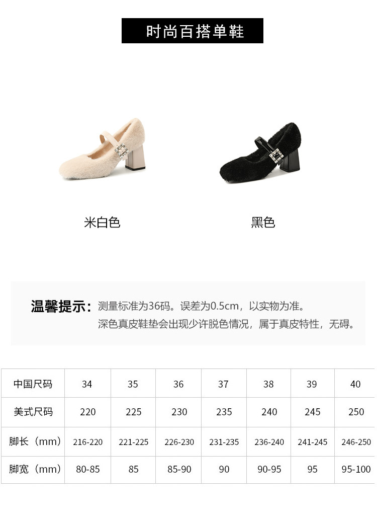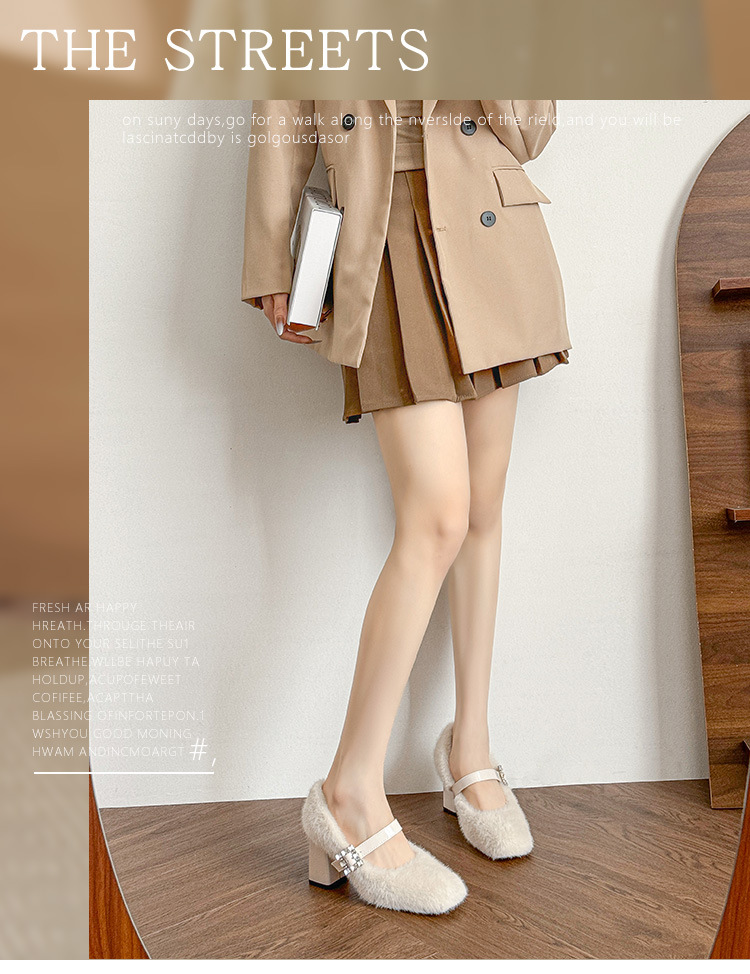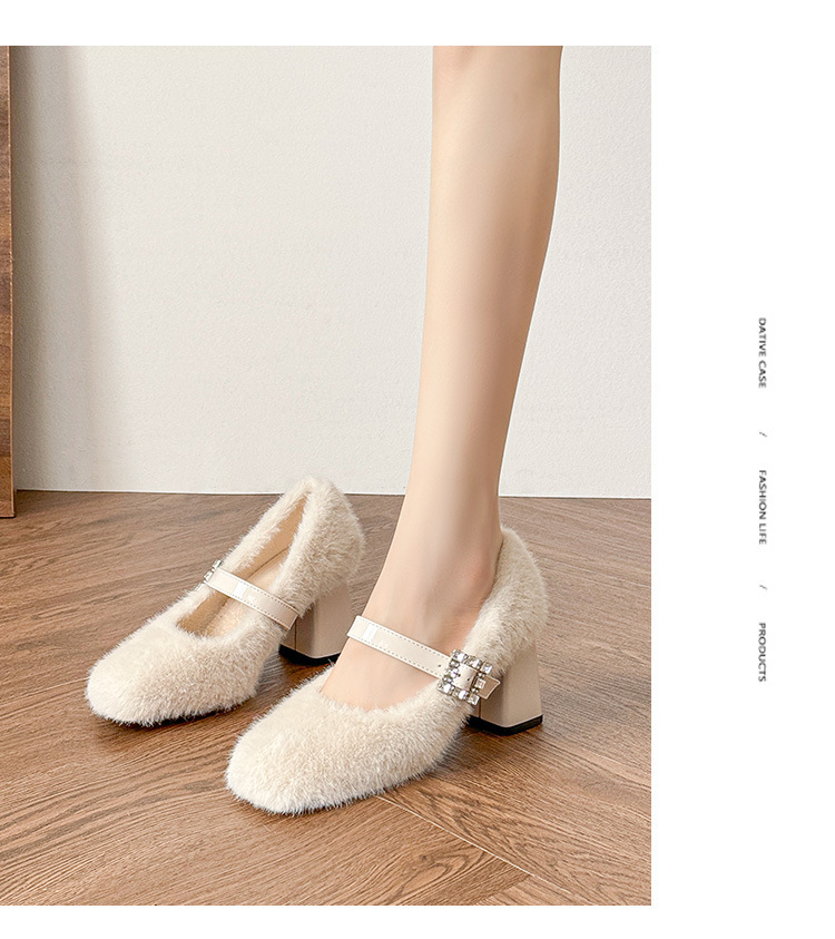 X601-b1 가을 겨울 기모 마오 마오 신발 하이힐 기질 신발 따뜻한 외부 착용 2024 새로운 하이힐 메리 제인 거친스토어 가기