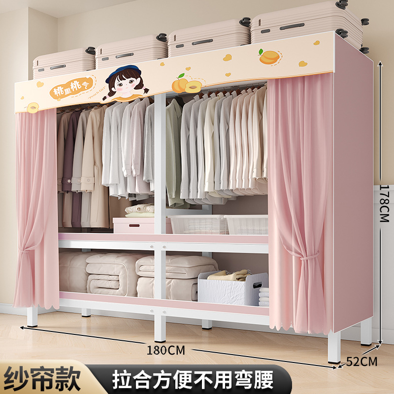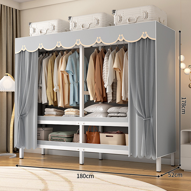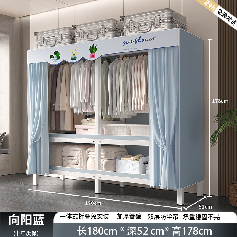 설치-무료 옷장 침실 가정용 간단한 렌탈 룸 옷감 내구성과 강한 접이식 조립 강철 프레임 옷 새로운 스타일스토어 가기