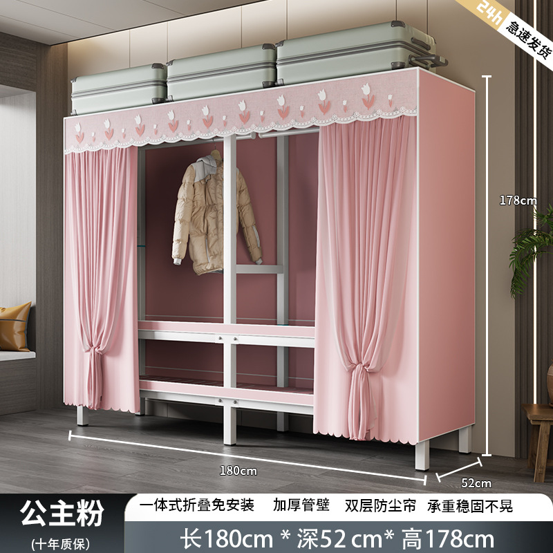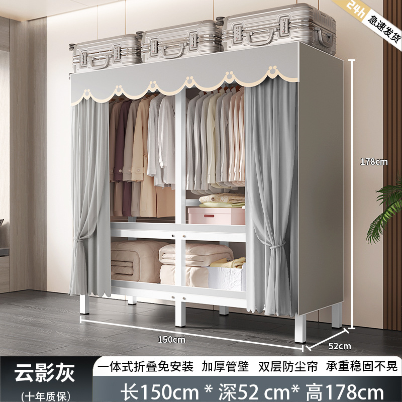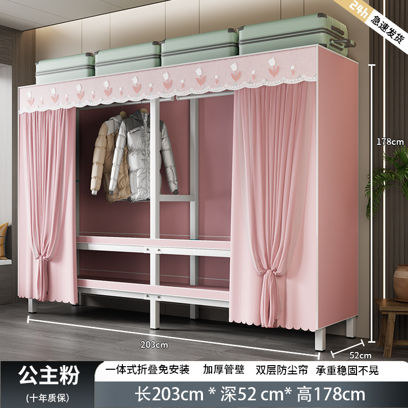 설치-무료 옷장 침실 가정용 간단한 렌탈 룸 옷감 내구성과 강한 접이식 조립 강철 프레임 옷 새로운 스타일