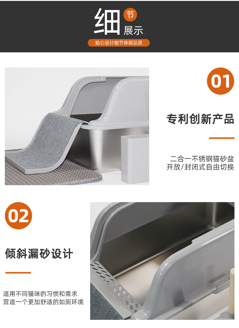 封闭式不锈钢猫砂盆布篷款超大号防抓耐磨易清洗宠物不锈钢猫砂盆