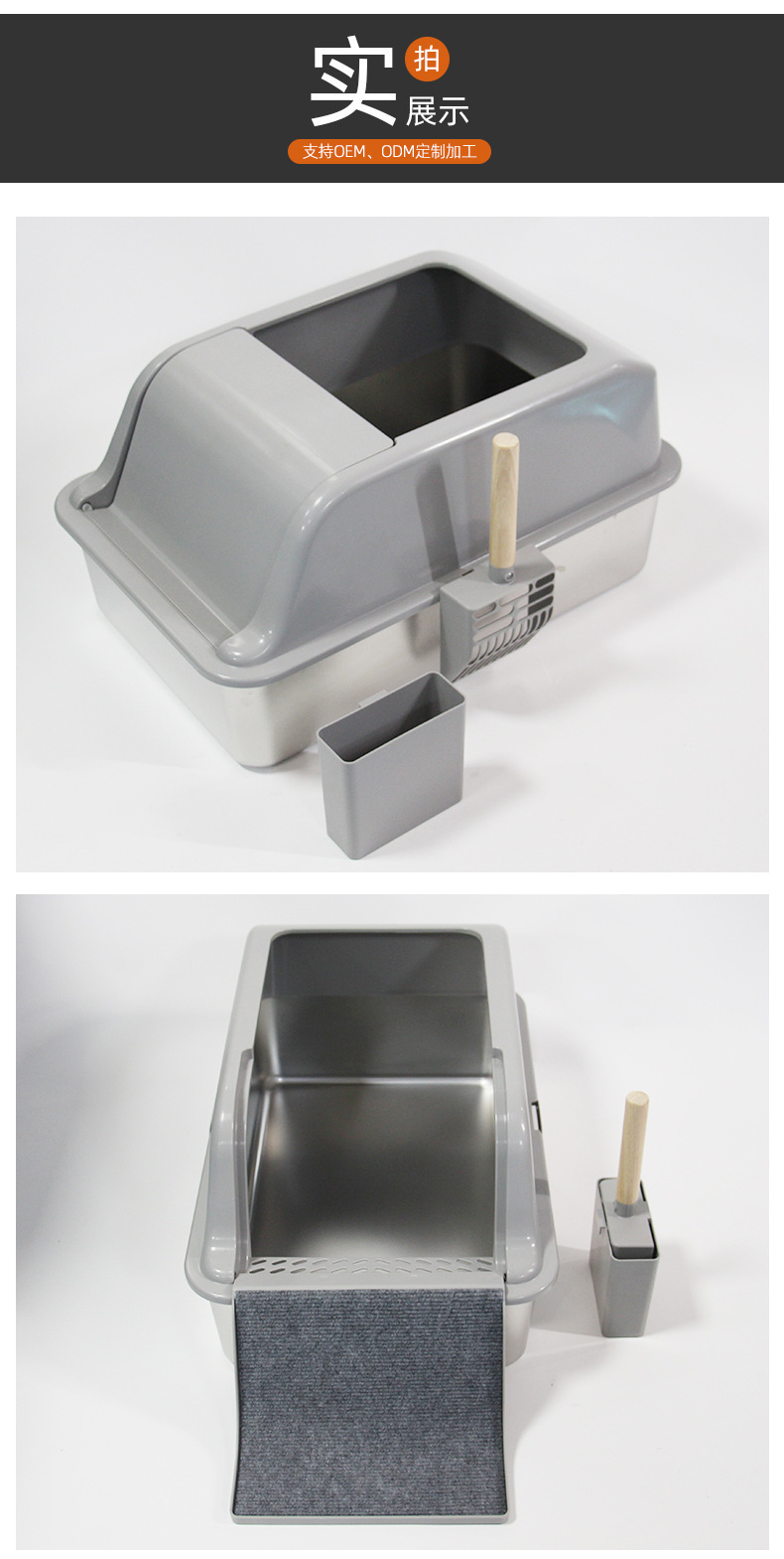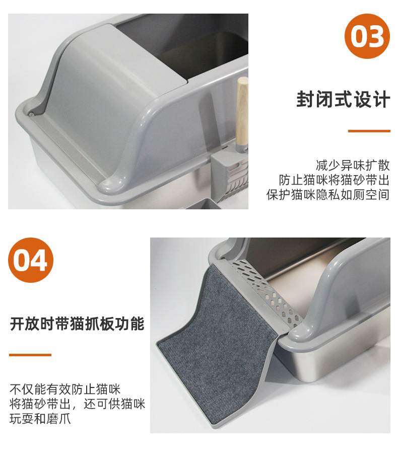 201 스테인리스 고양이 화장실 대용량 방진 고양이 화장실 플립 커버 고양이 스크래치 패드 고양이 화장실
