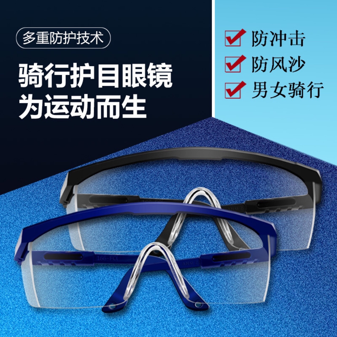 防飞溅防尘厂家蓝白黑白眼镜伸拉腿