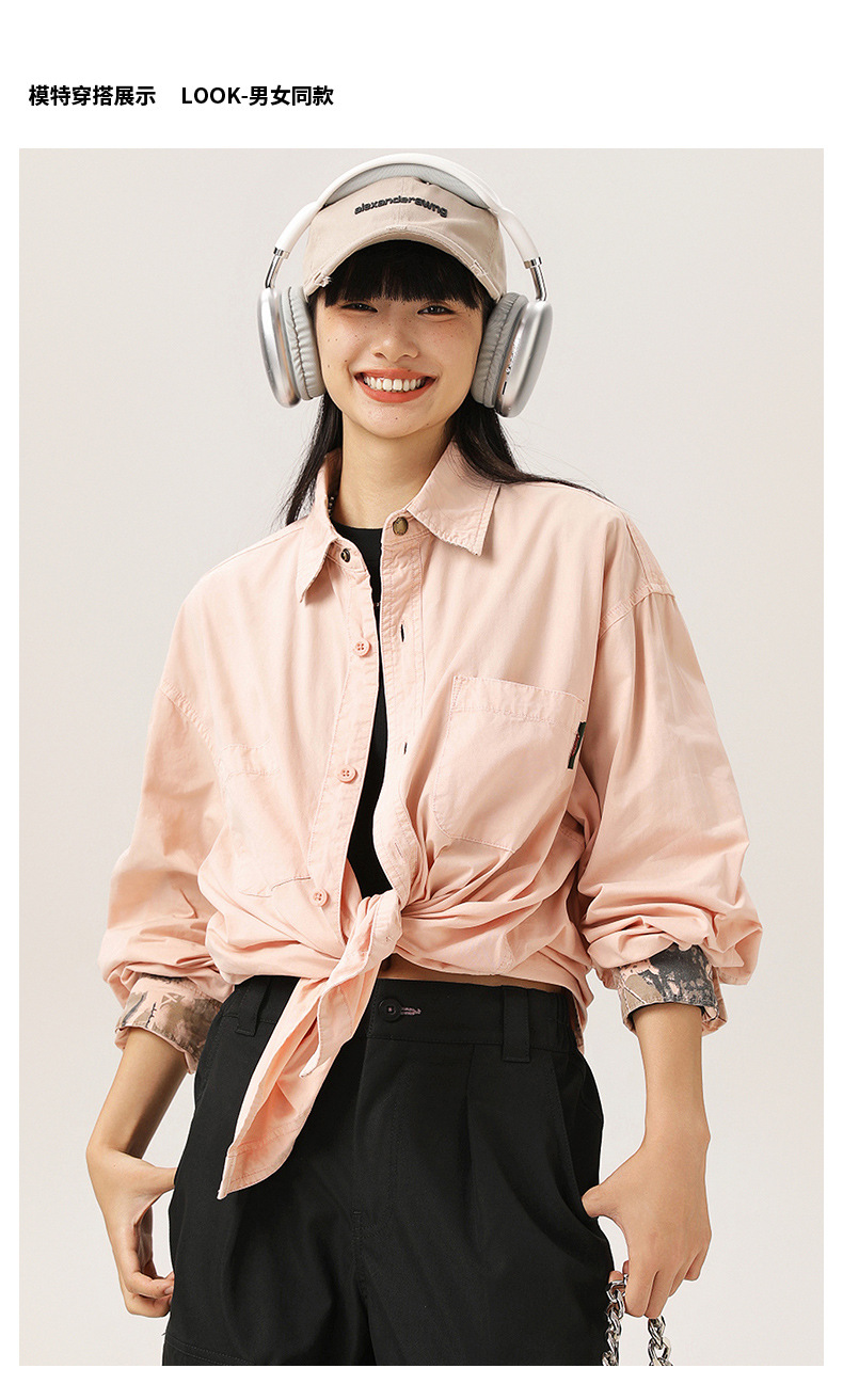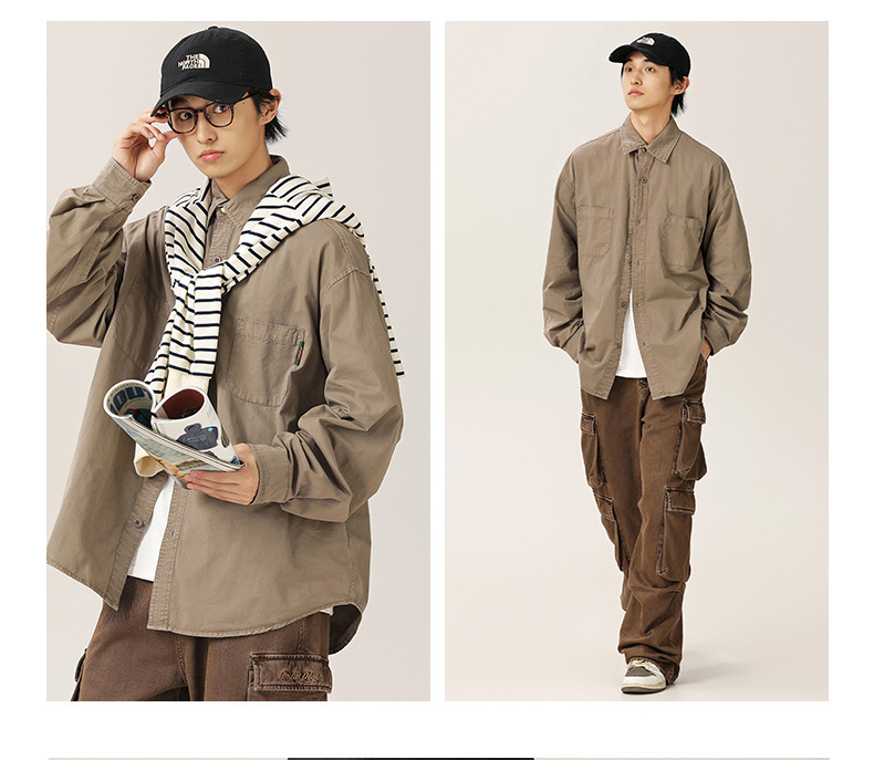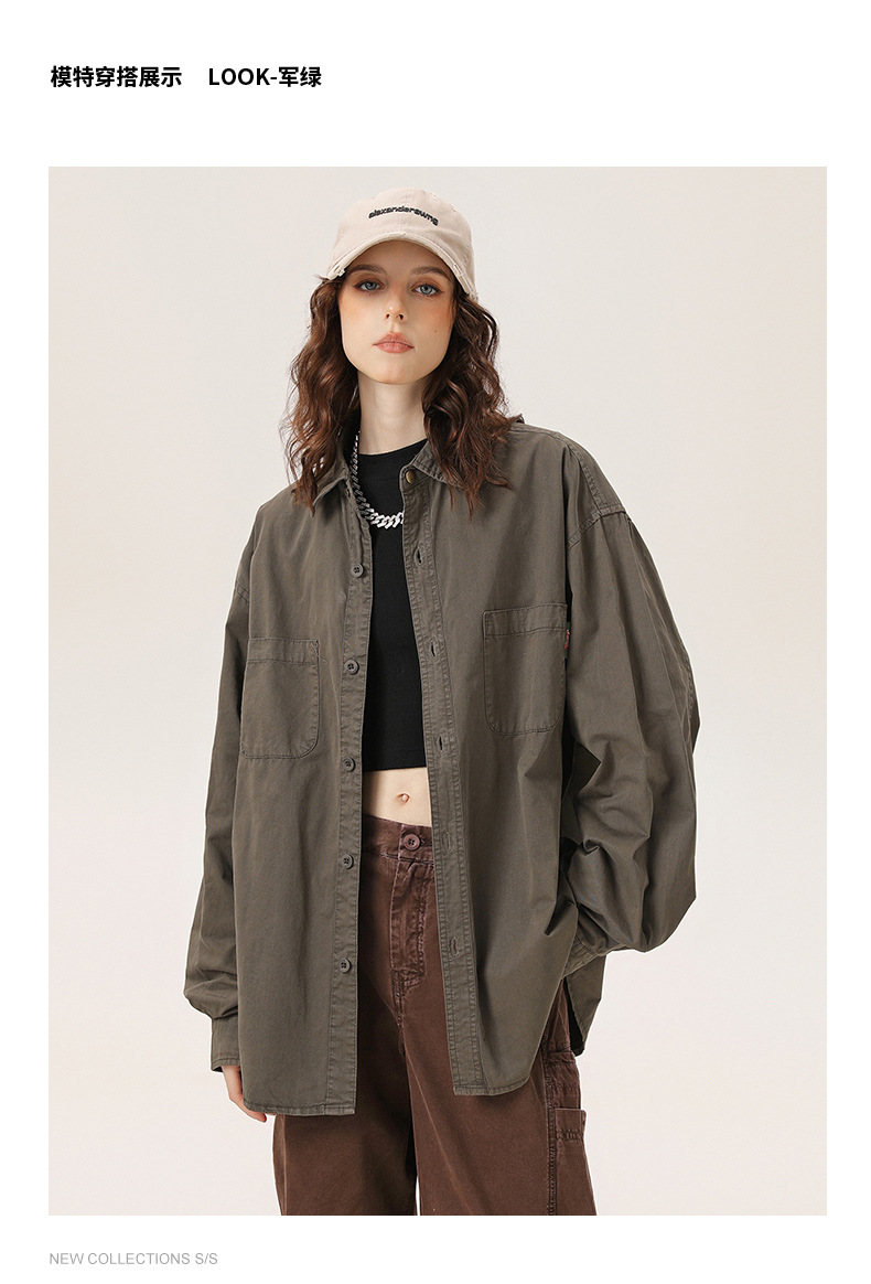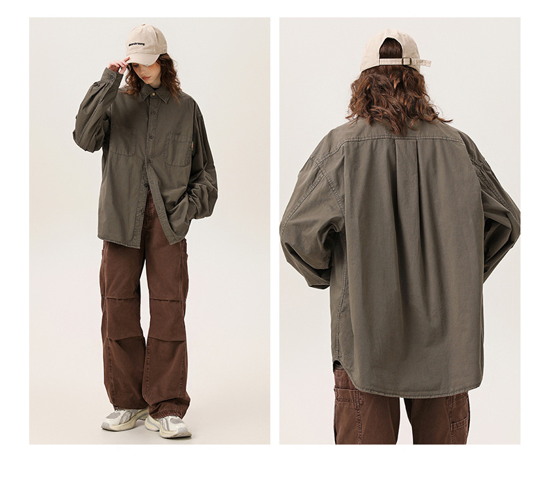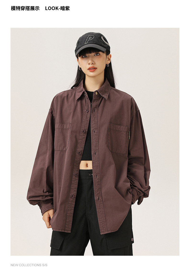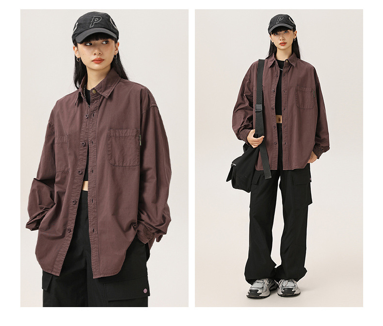 City Fanpin 2024 가을 새로운 복고풍 느슨한 남녀 캐주얼 셔츠 무철 남성 셔츠스토어 가기
