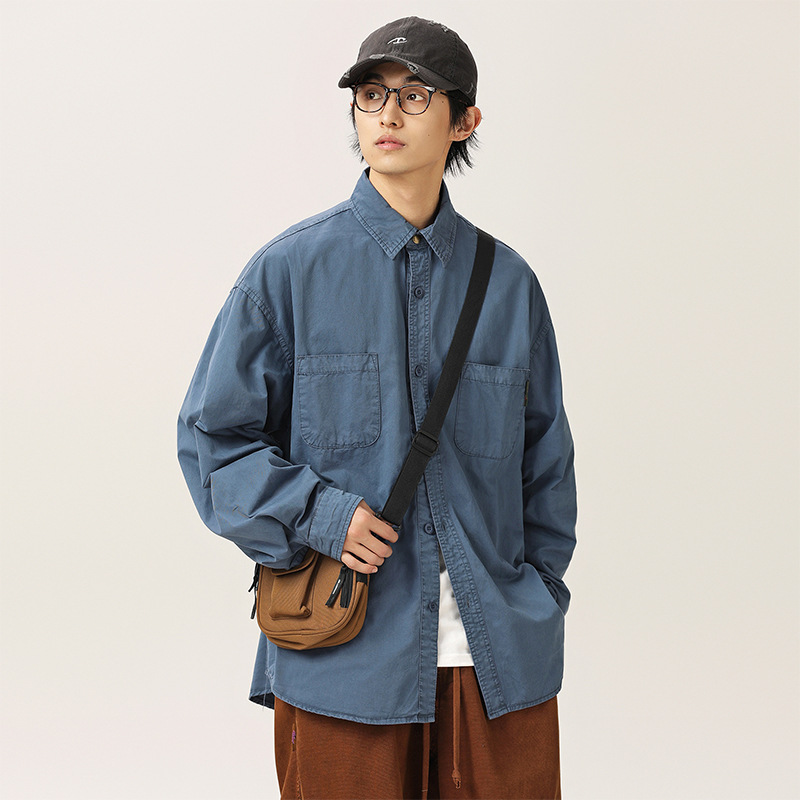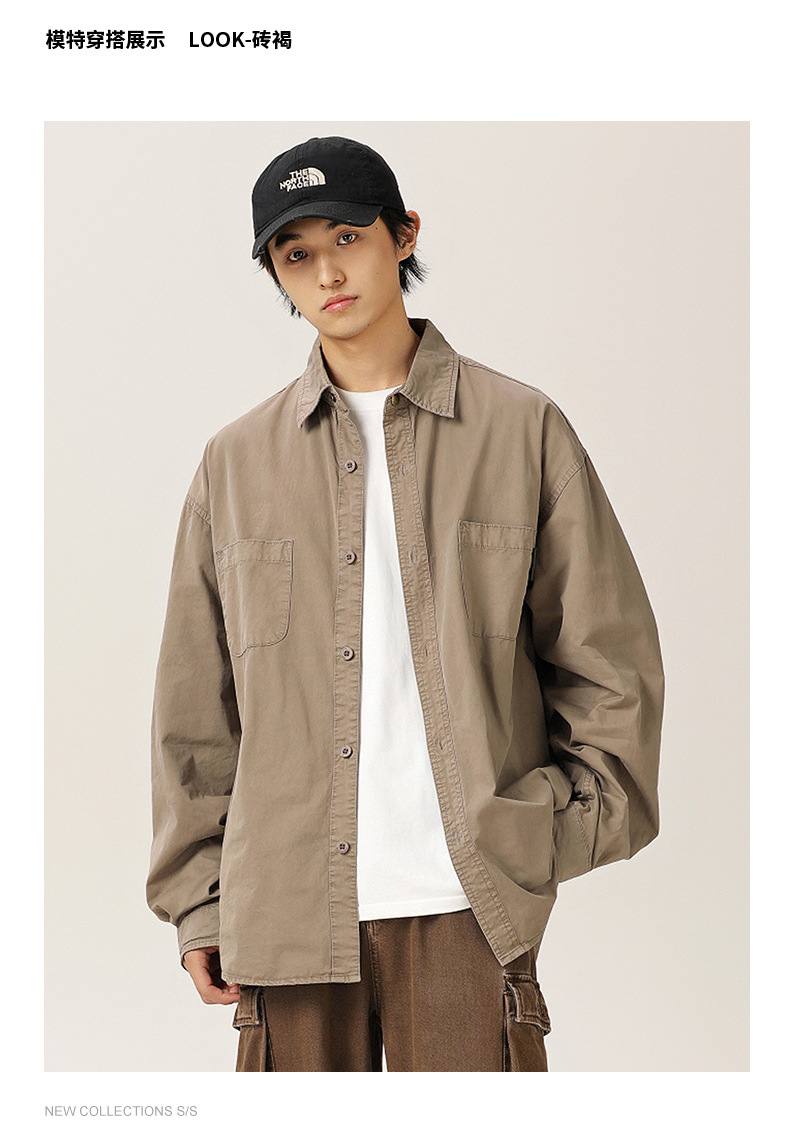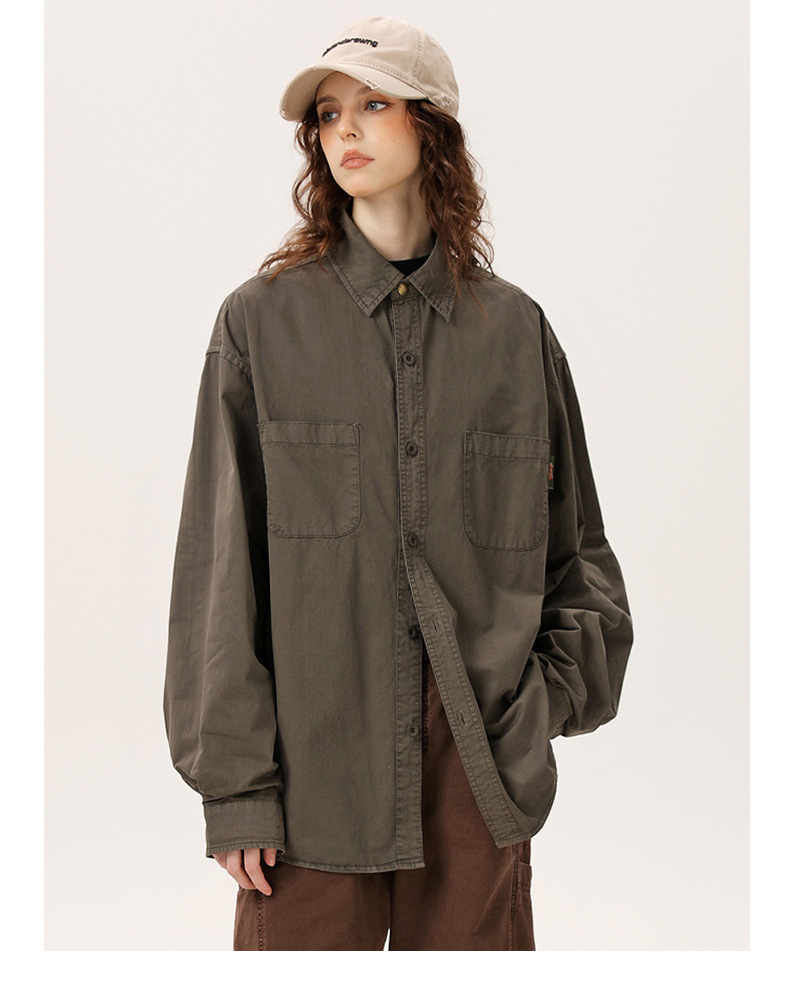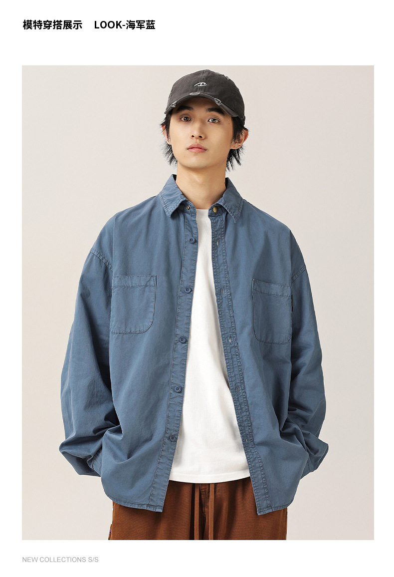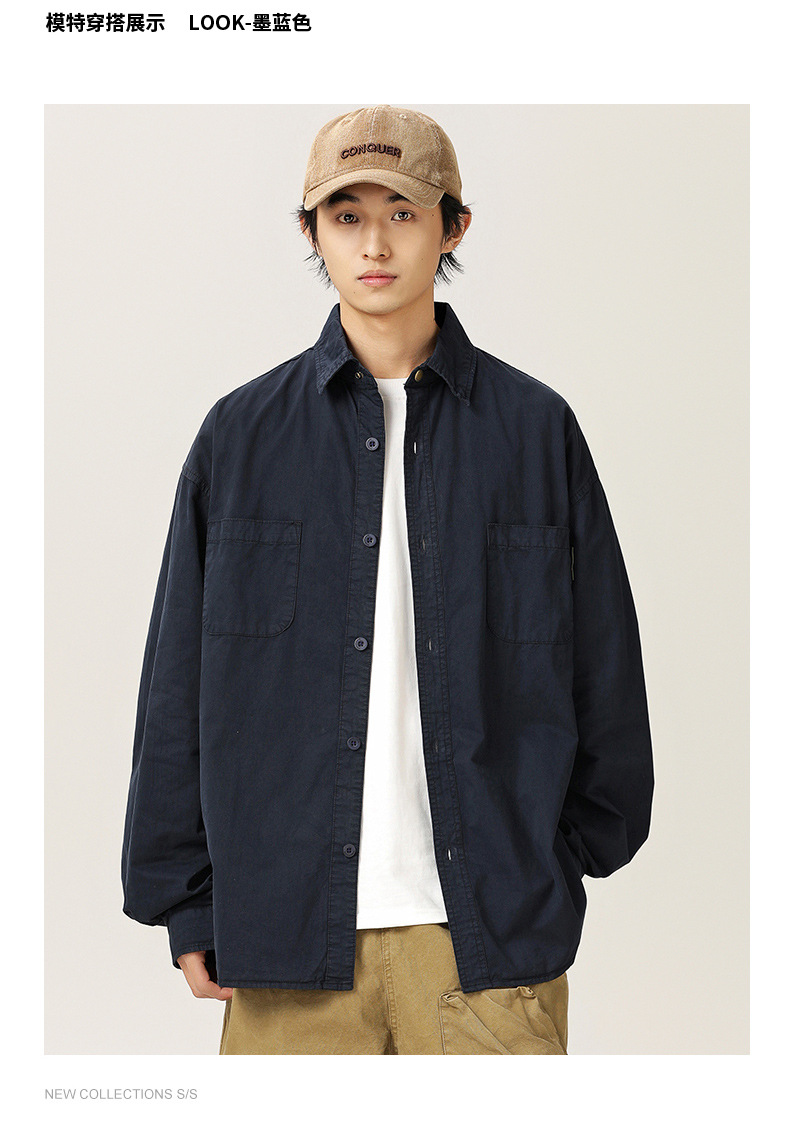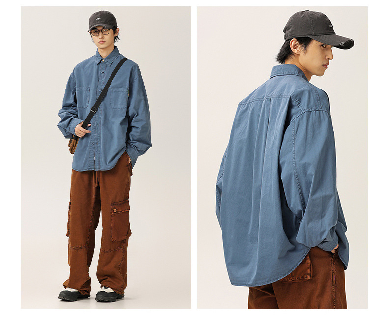 City Fanpin 2024 가을 새로운 복고풍 느슨한 남녀 캐주얼 셔츠 무철 남성 셔츠스토어 가기