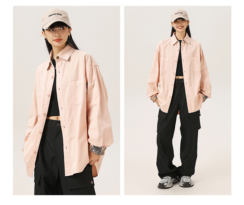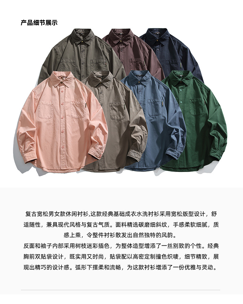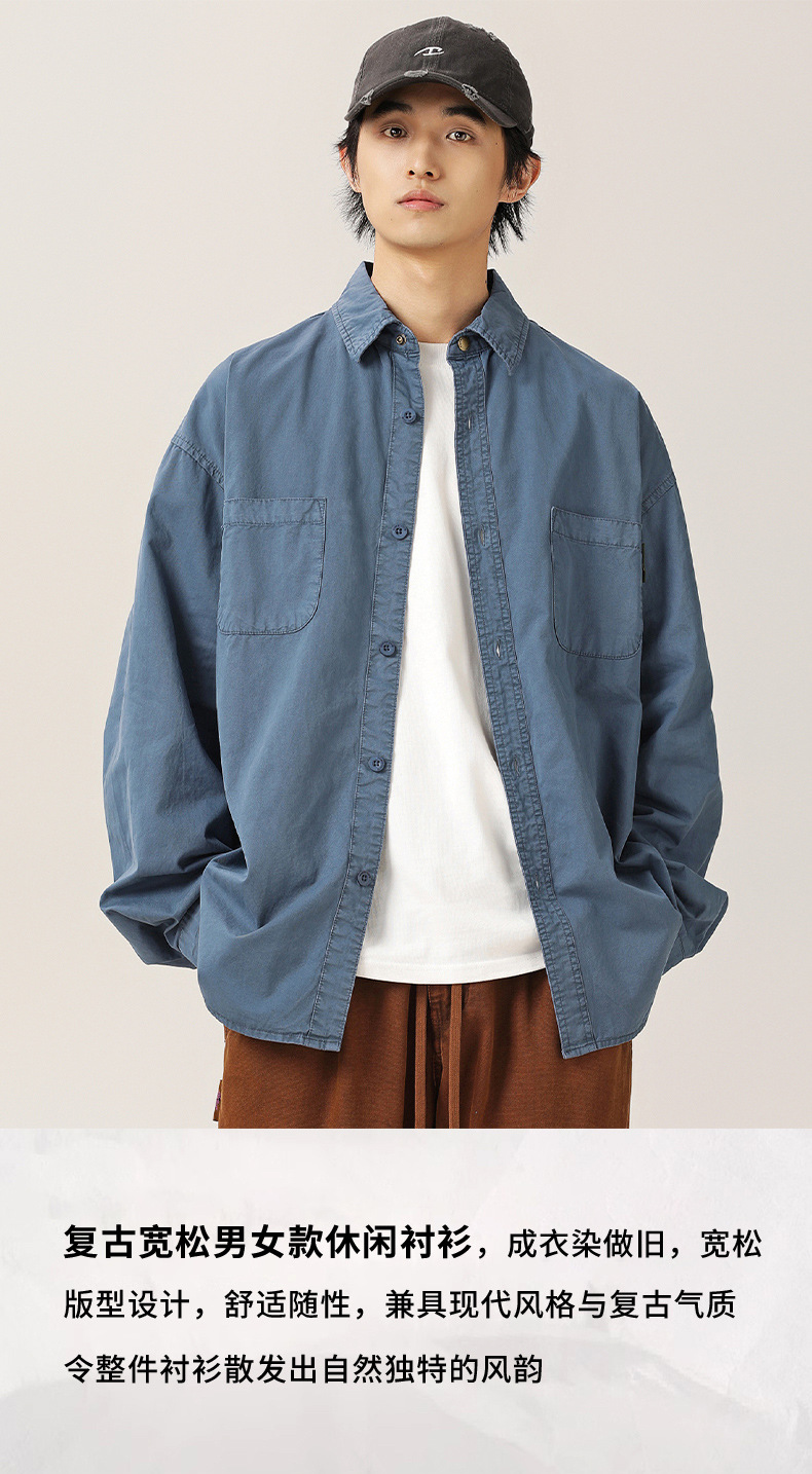 City Fanpin 2024 가을 새로운 복고풍 느슨한 남녀 캐주얼 셔츠 무철 남성 셔츠