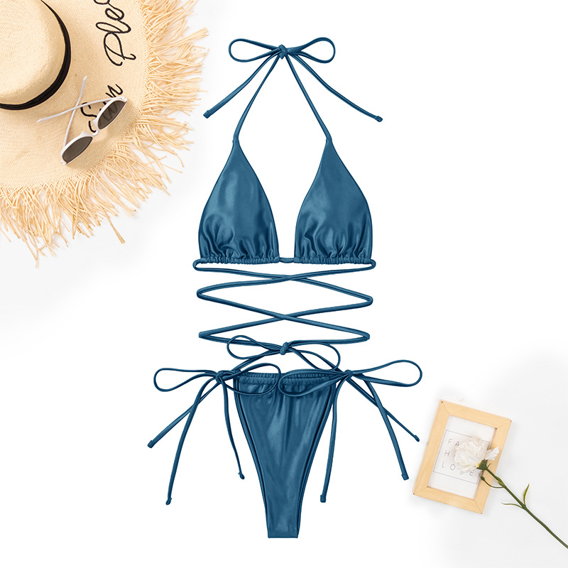 2024 새로운 타이트 백리스 유럽 및 미국 대외 무역 섹시한 비키니 여성 스플릿 솔리드 컬러 수영복 멀티 컬러 비키니스토어 가기