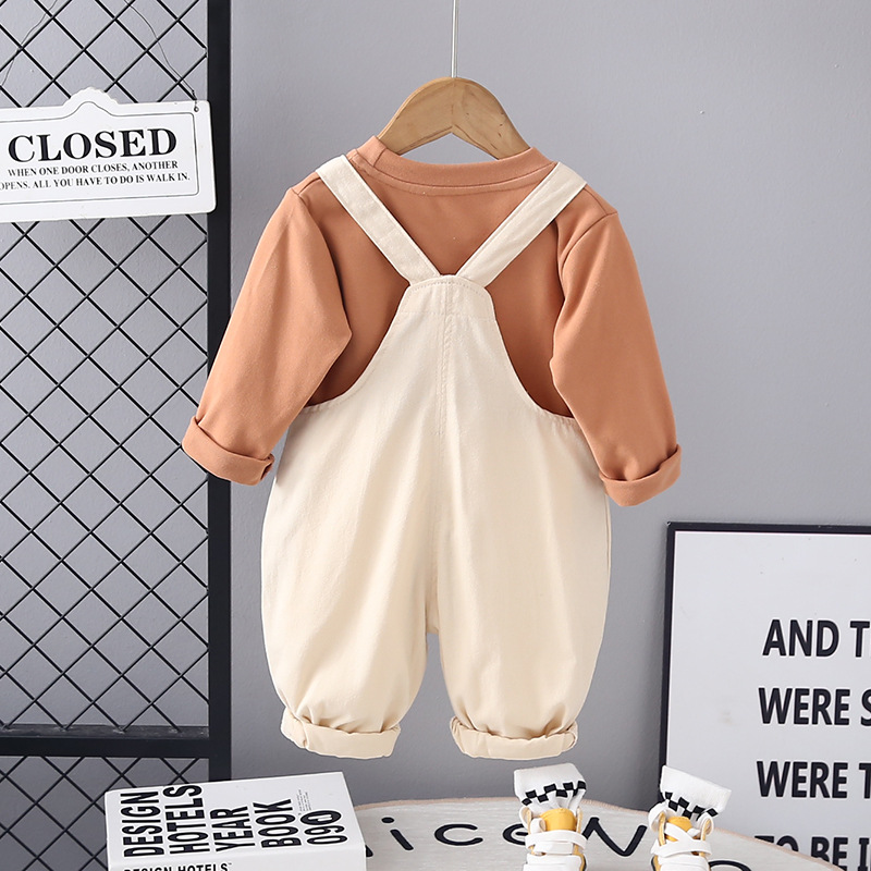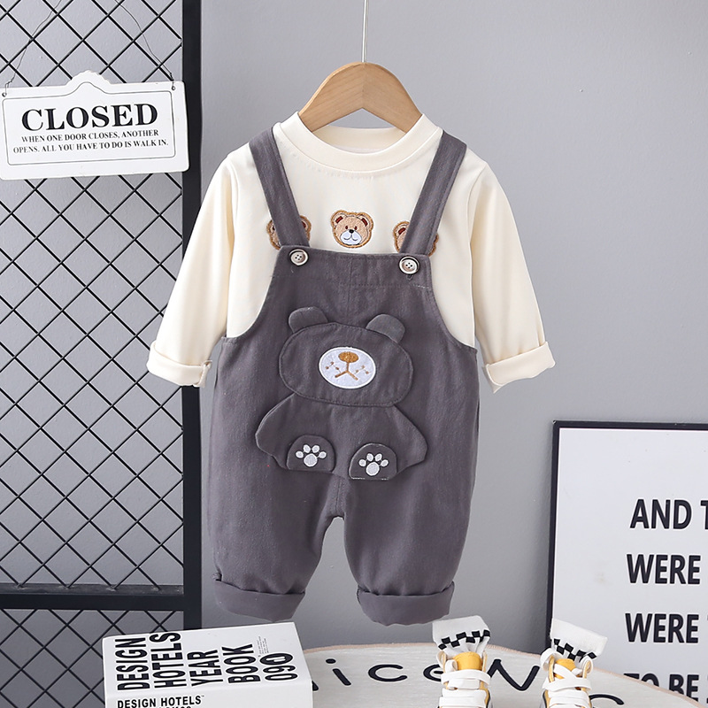 아동복 소년 봄과 가을 세트 2024 새로운 아기 소년 가을 착용 세 곰 머리 스트랩 투피스 세트스토어 가기