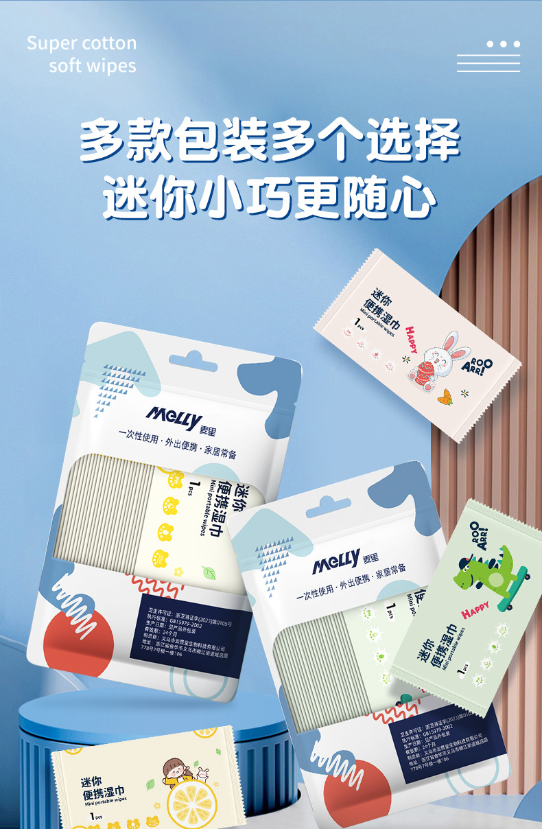 미니 젖은 물티슈 휴대용 별도의 팩 손 입 젖은 물티슈 학생 가정 어린이 야외 손 입 청소 젖은 물티슈