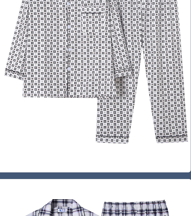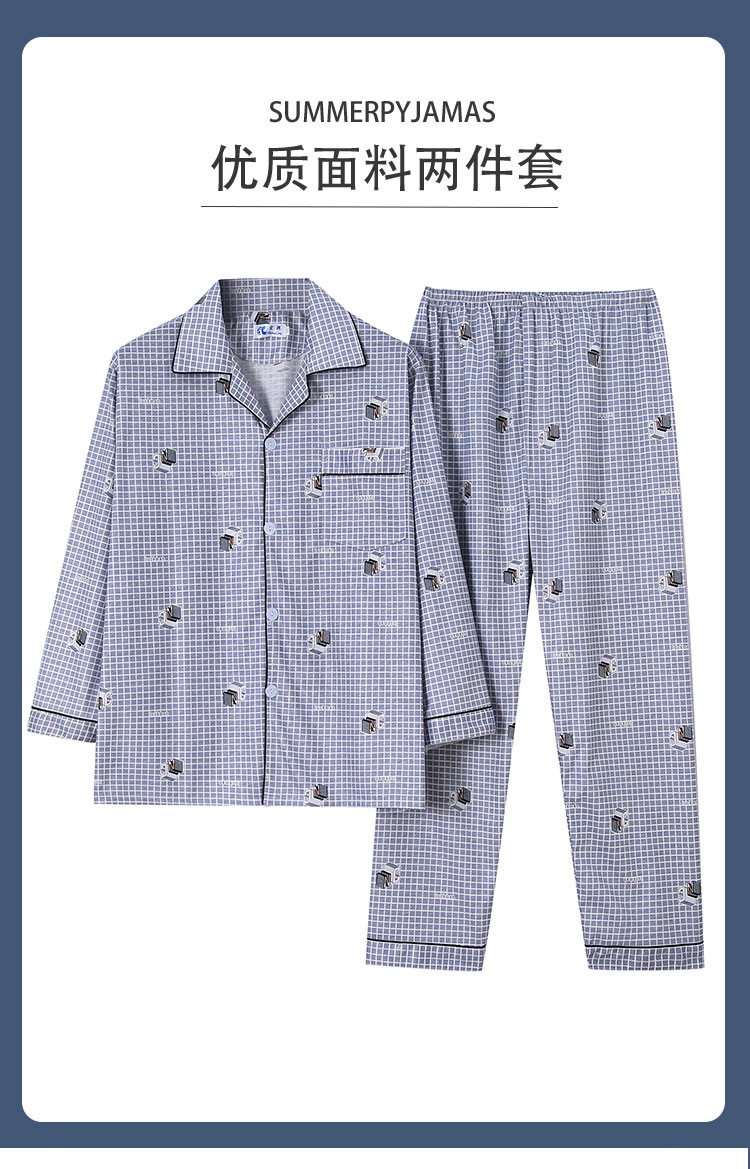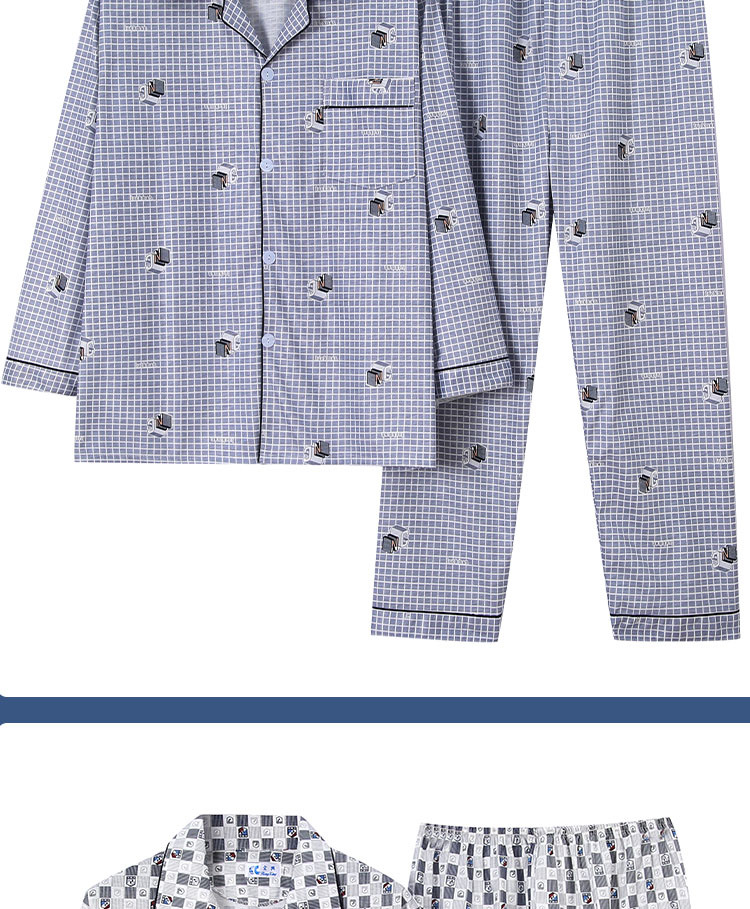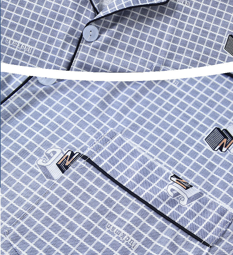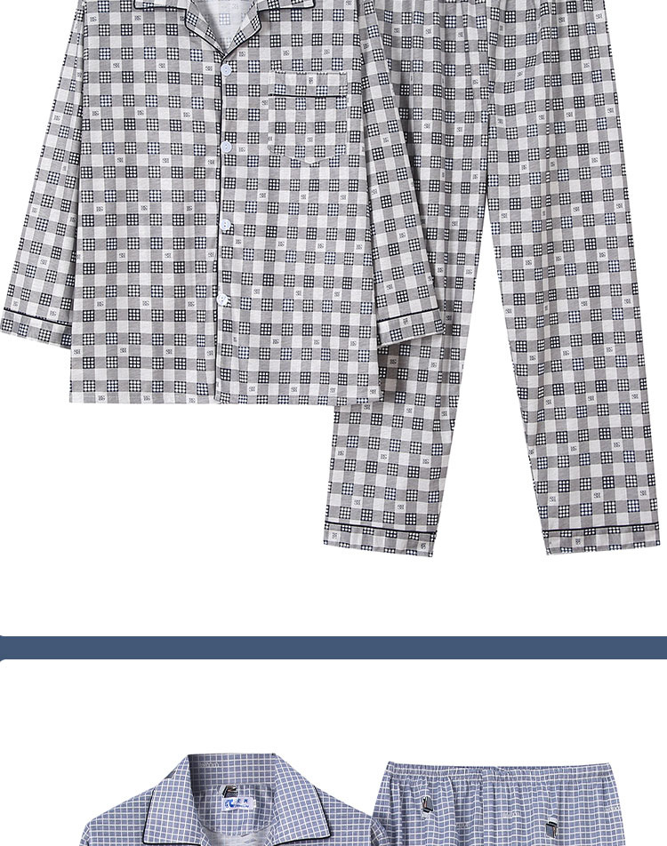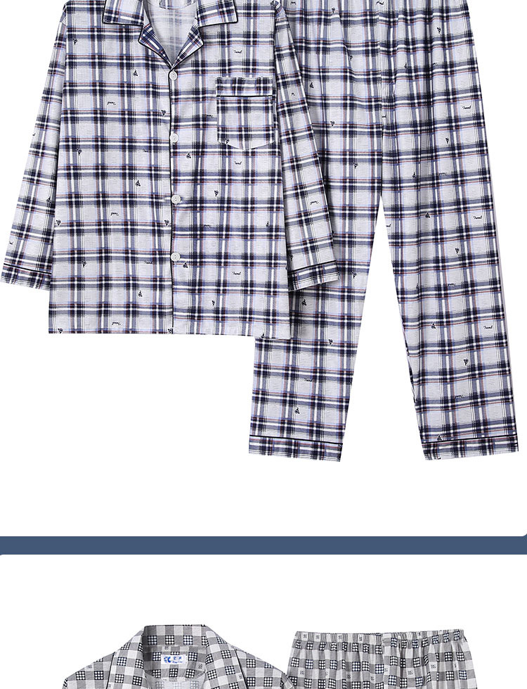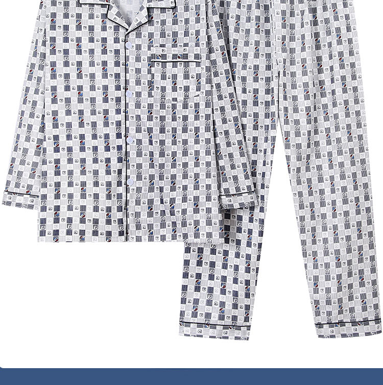 가을 잠옷 남자 양면 폴리 에스터 면 긴팔 바지 밀크 실크 체크 젊은 중년 및 노인 캐주얼 홈 세트스토어 가기