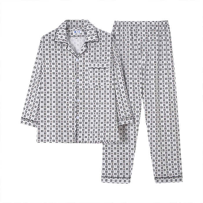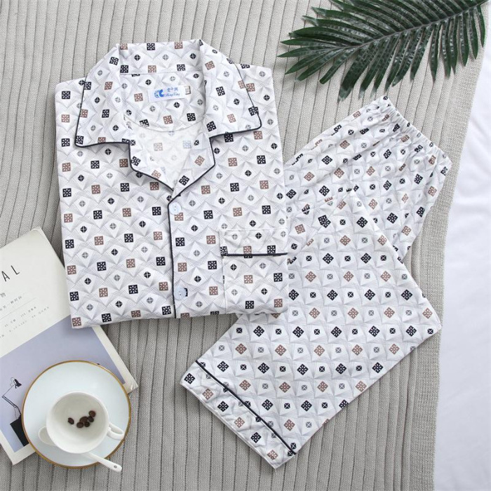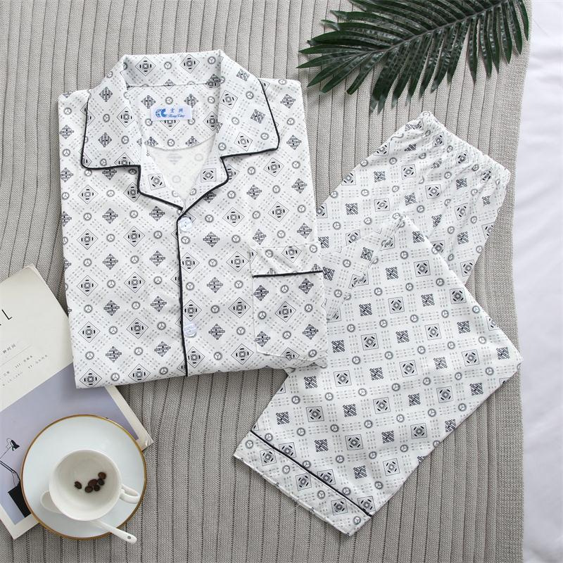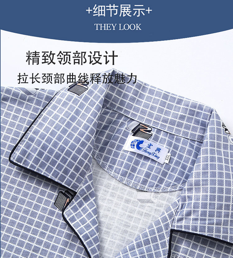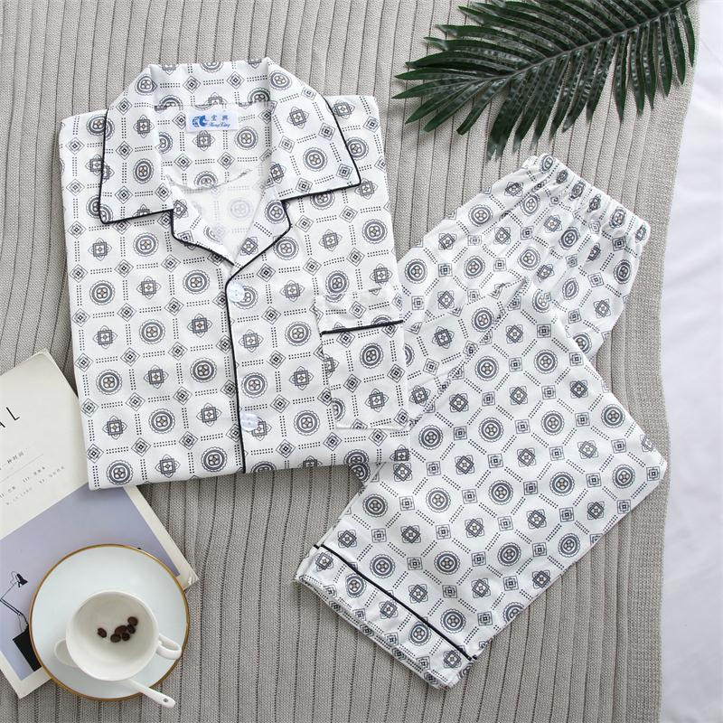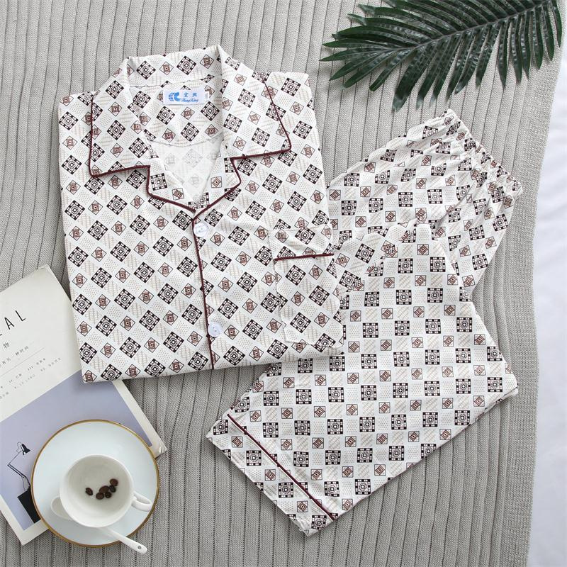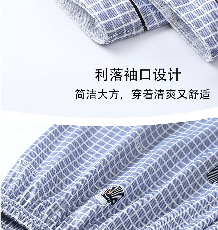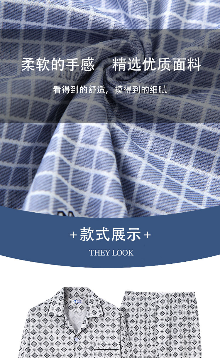 가을 잠옷 남자 양면 폴리 에스터 면 긴팔 바지 밀크 실크 체크 젊은 중년 및 노인 캐주얼 홈 세트스토어 가기