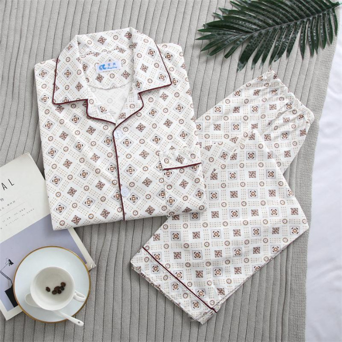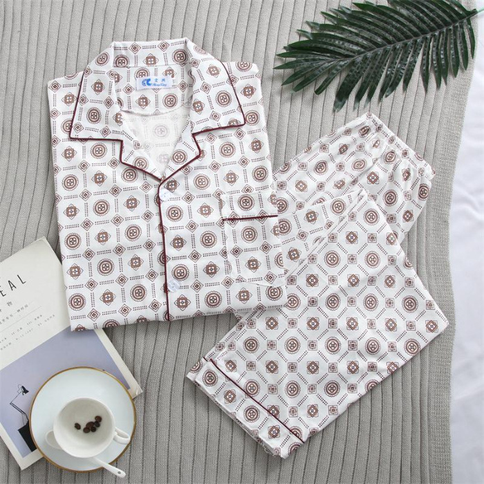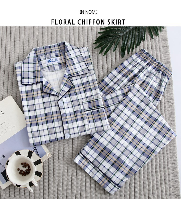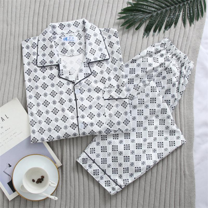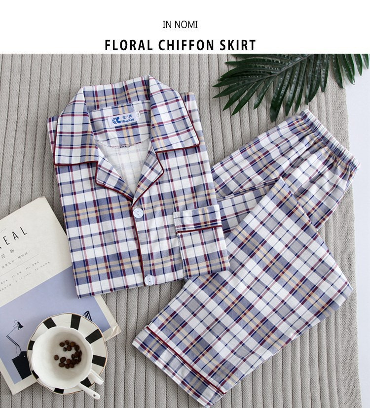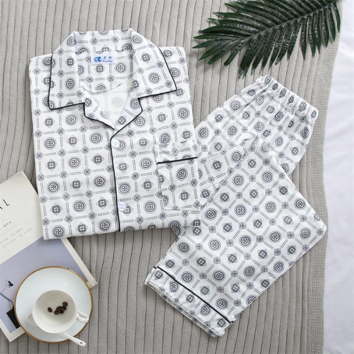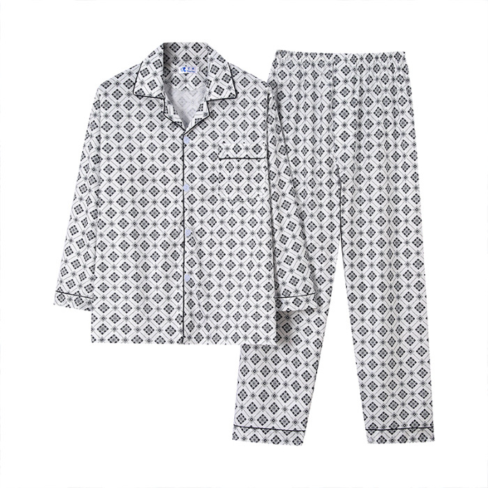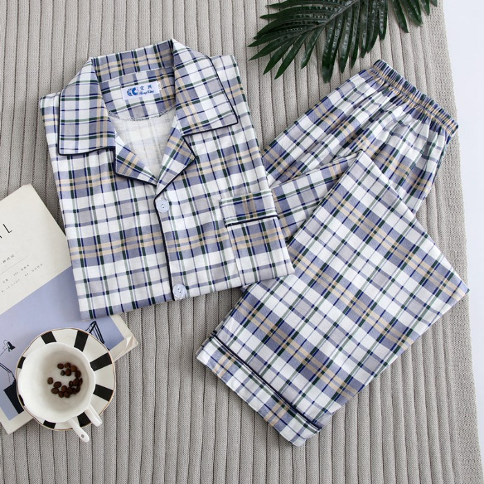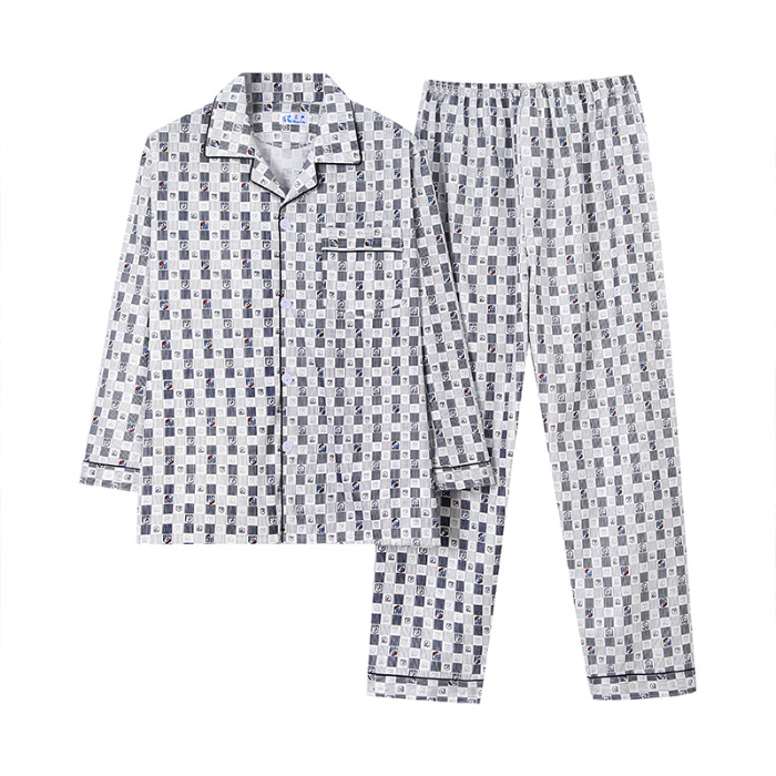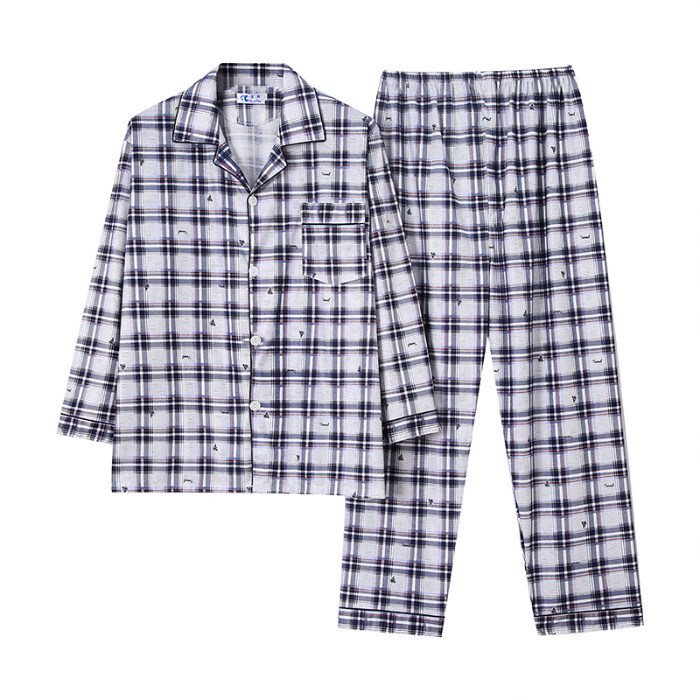 가을 잠옷 남자 양면 폴리 에스터 면 긴팔 바지 밀크 실크 체크 젊은 중년 및 노인 캐주얼 홈 세트