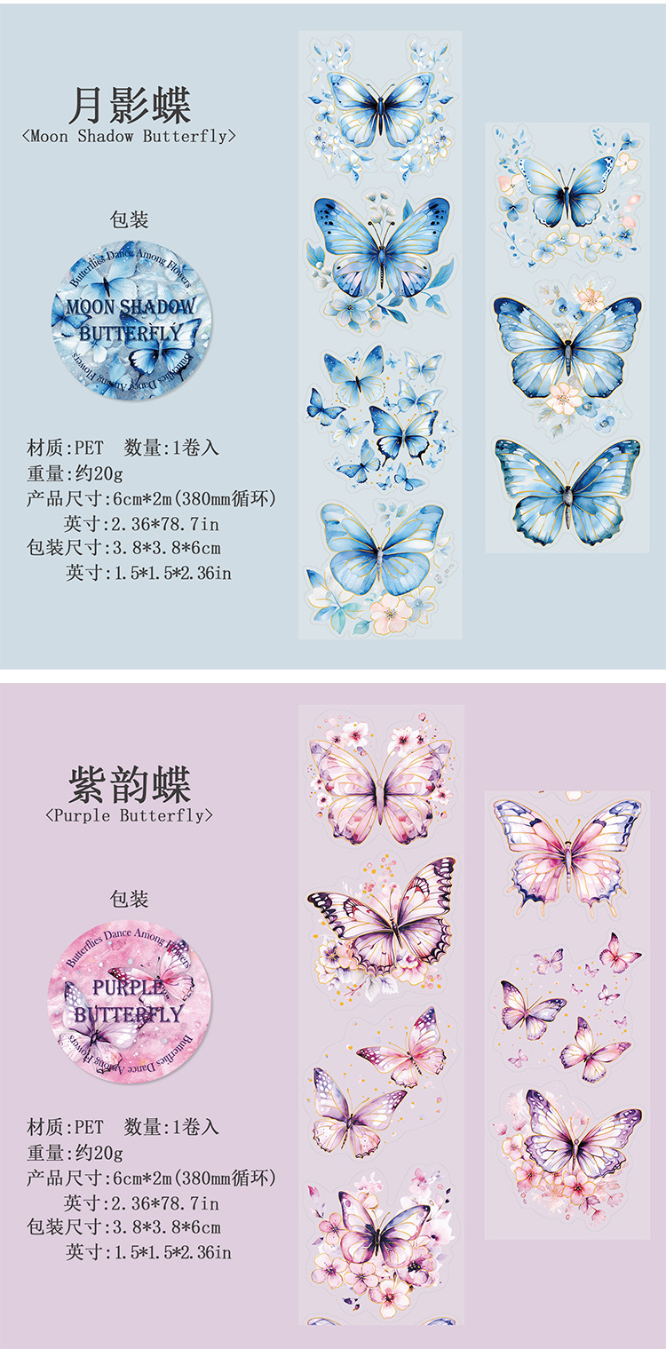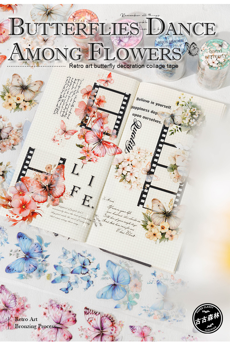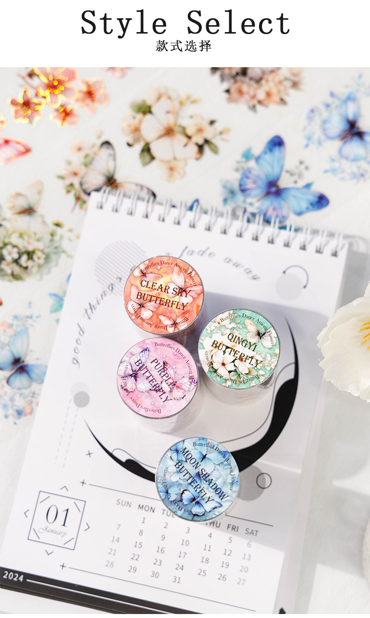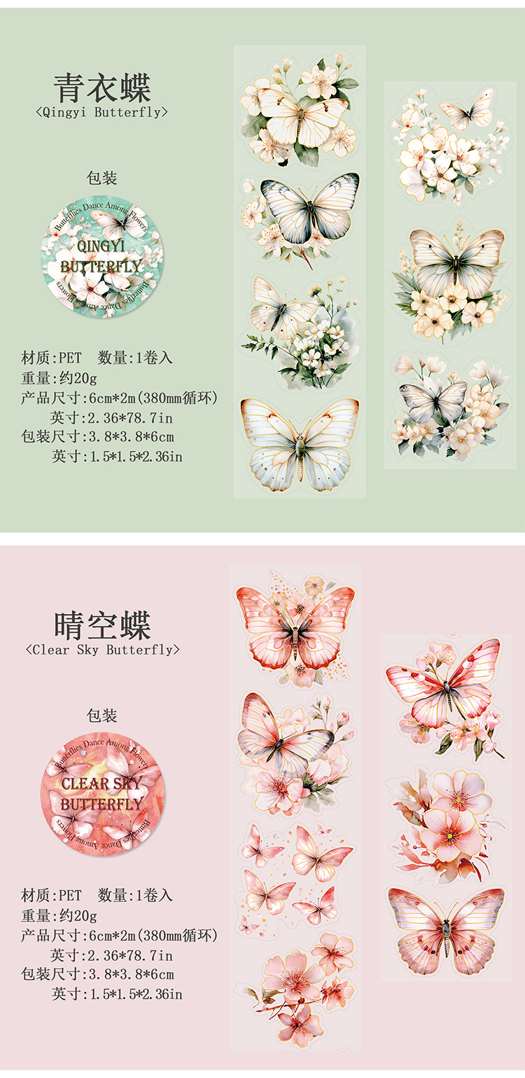 고대 숲 애완 동물 테이프 꽃 나비 댄스 시리즈 4 나비 메인 차트 콜라주 손 계정 소재 테이프스토어 가기