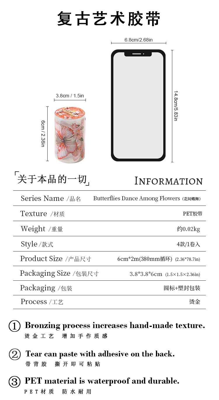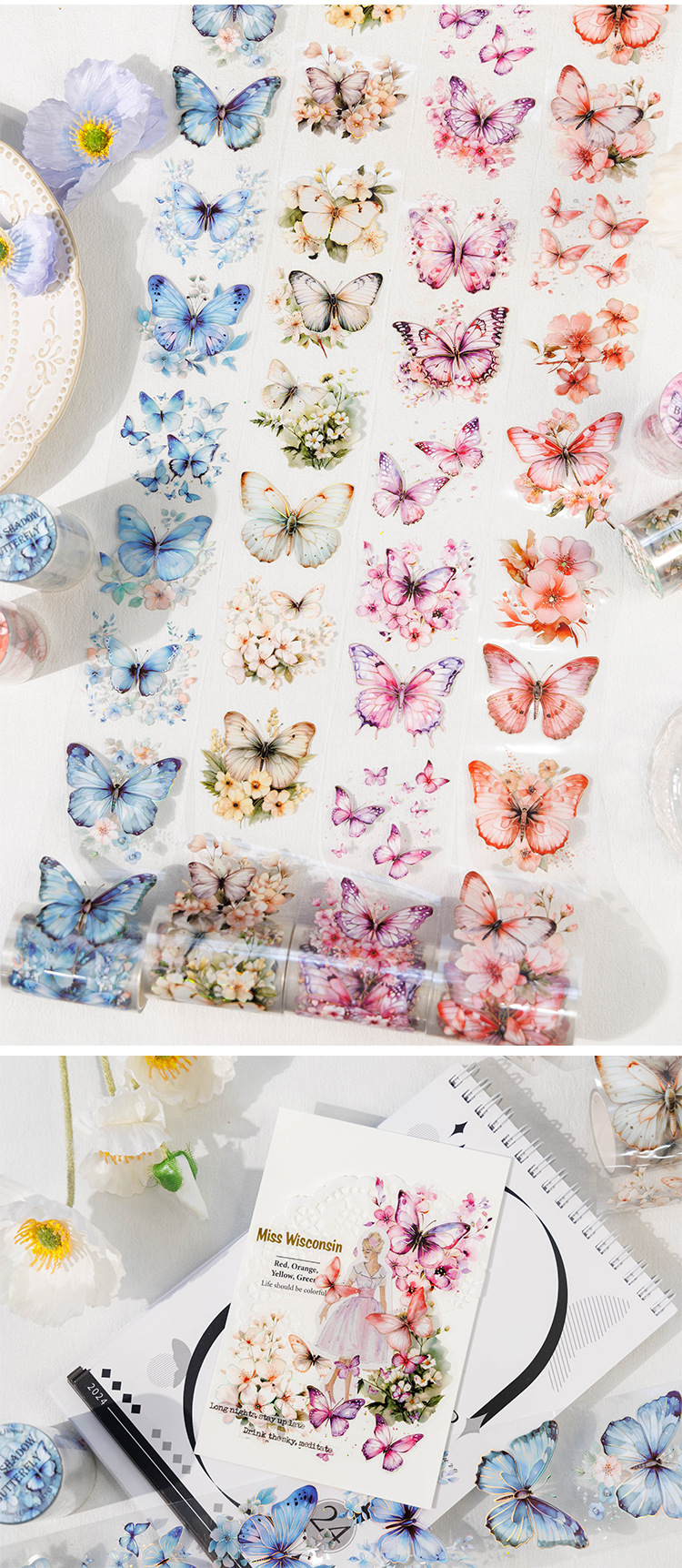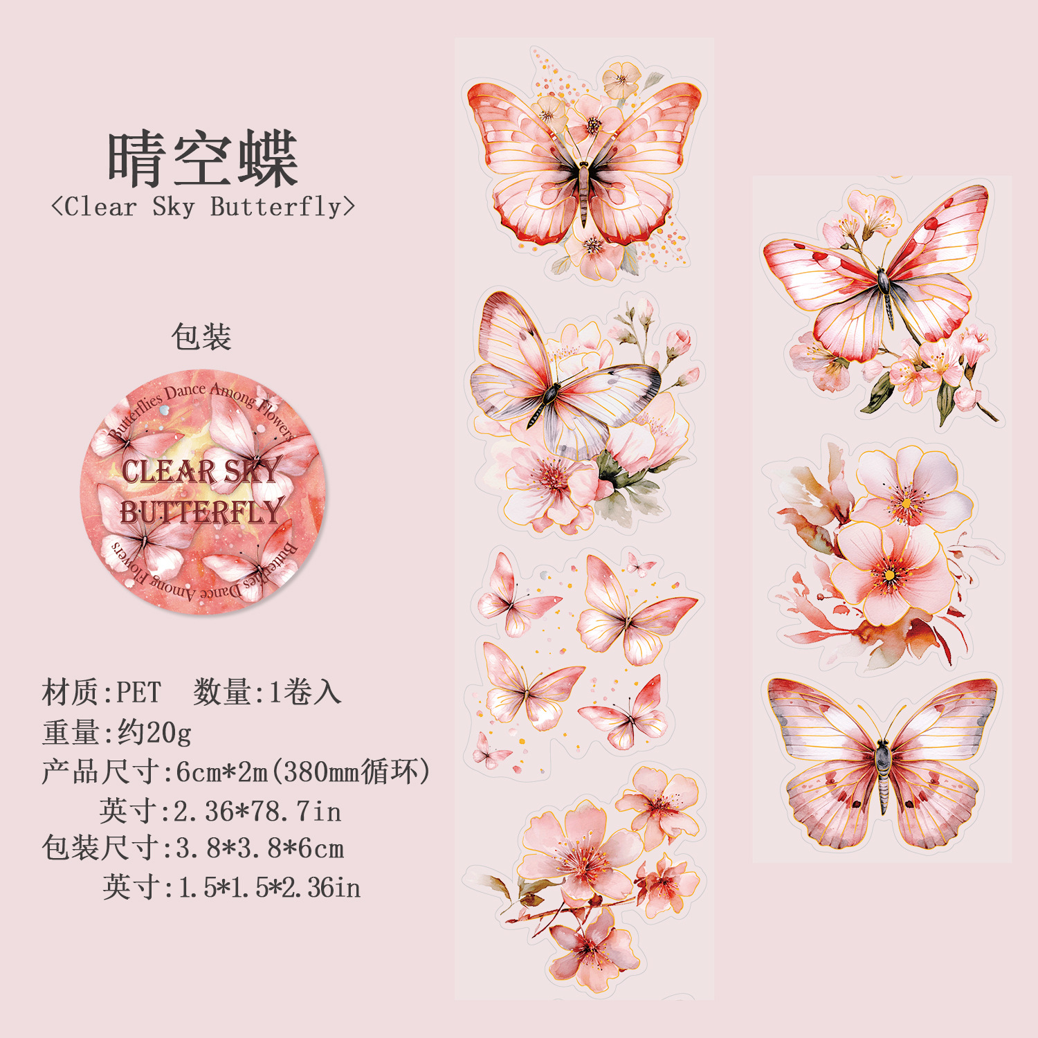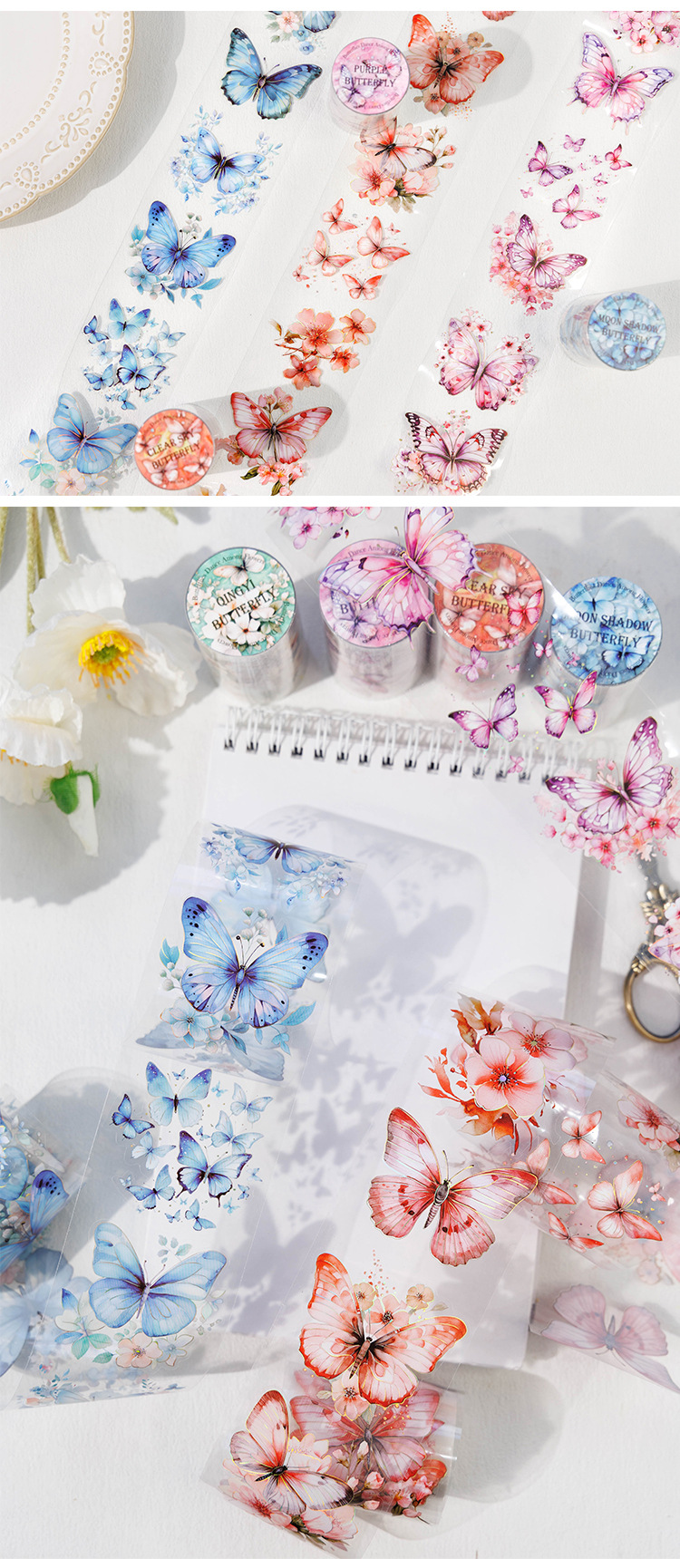 고대 숲 애완 동물 테이프 꽃 나비 댄스 시리즈 4 나비 메인 차트 콜라주 손 계정 소재 테이프스토어 가기