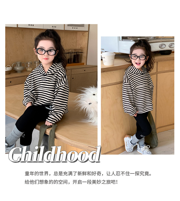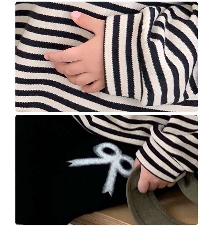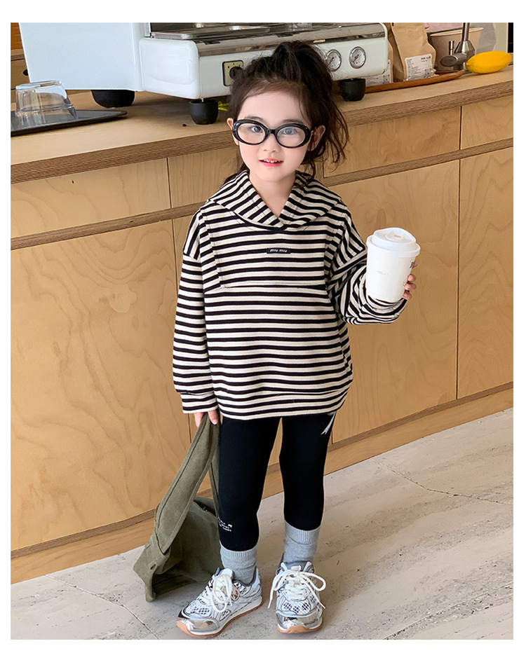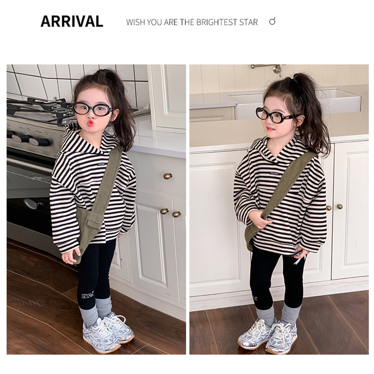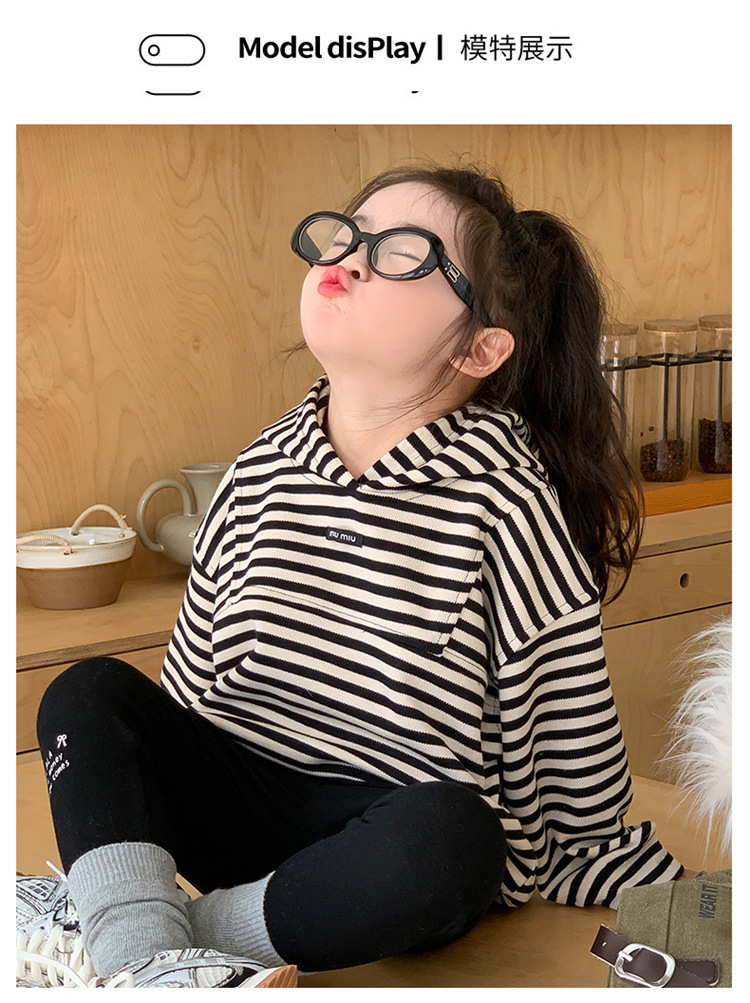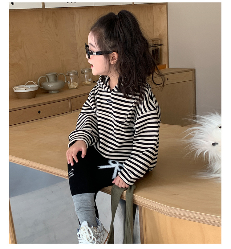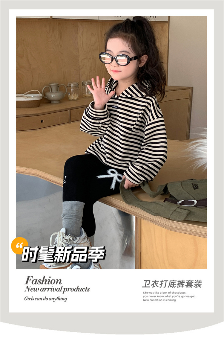 어린이 의류 소녀 후드 조끼의 한국어 버전 2024 가을 세트 유행 스트라이프 재킷 간단한 바지 바지