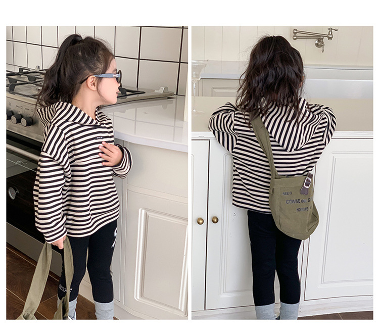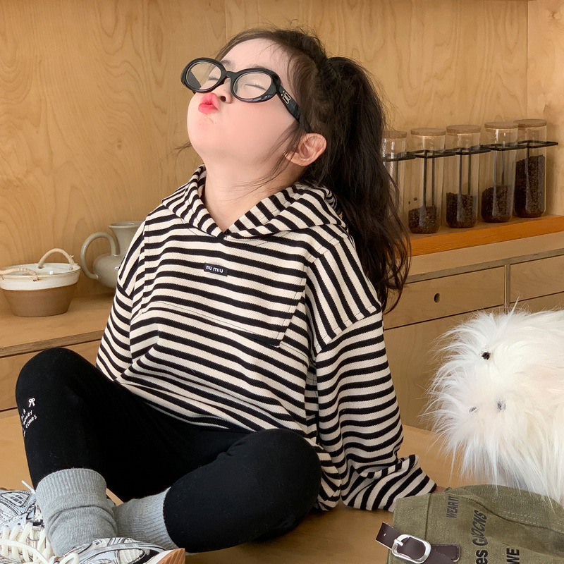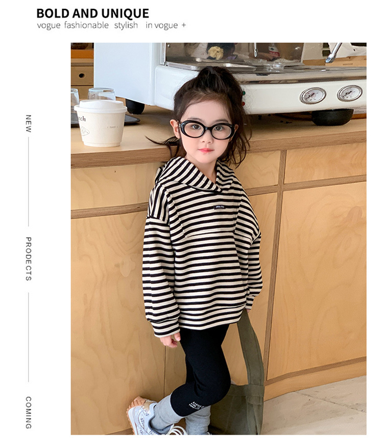 어린이 의류 소녀 후드 조끼의 한국어 버전 2024 가을 세트 유행 스트라이프 재킷 간단한 바지 바지스토어 가기