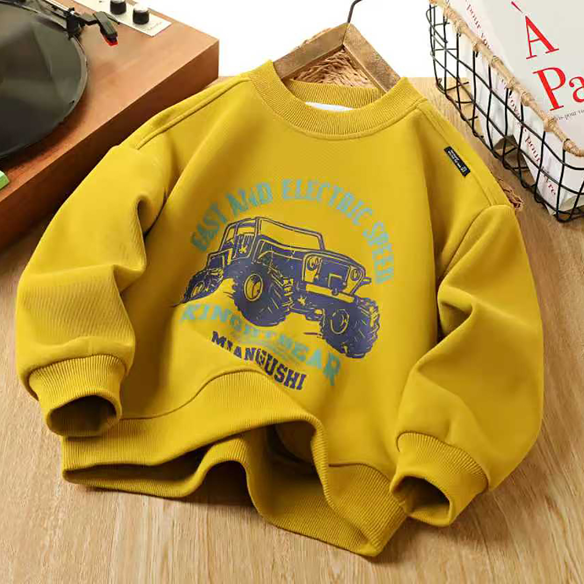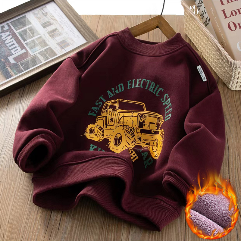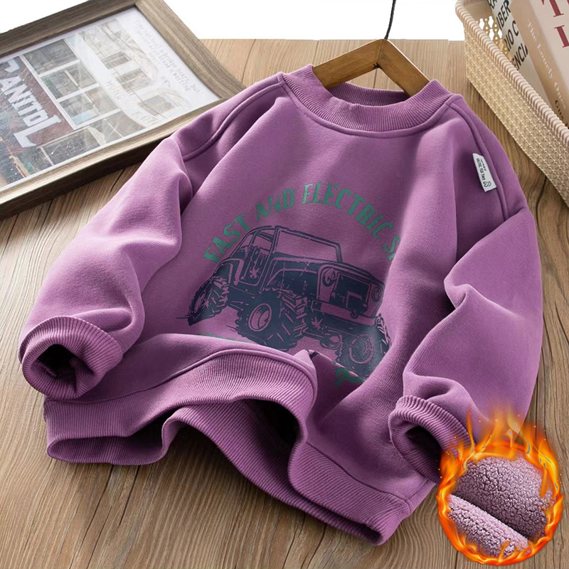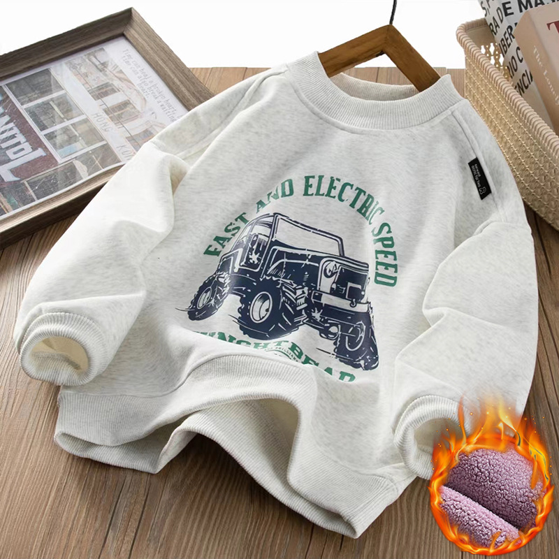 남아용 기모 스웨트셔츠 2025 가을 겨울 신상 중대형 아동용 스타일리시한 일체형 기모 두꺼운 캐주얼 트렌디 아동복스토어 가기