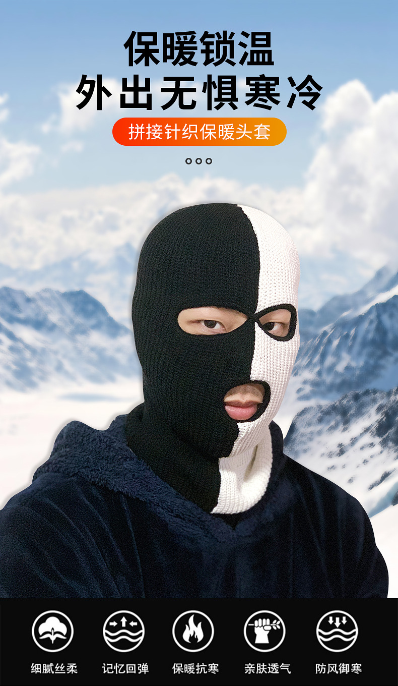 발라클라바 2색 해적모 따뜻한 후드 스키 방한 라이딩 마스크 후드 3홀 모자 페이스 마스크