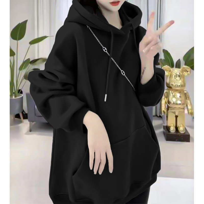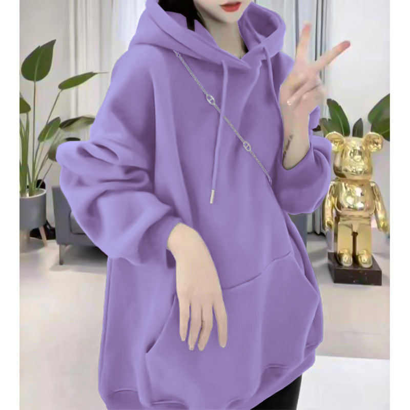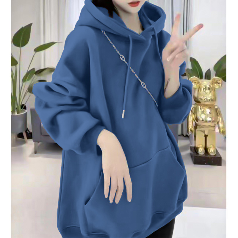 플러스 사이즈 봄과 가을 슬리밍 단색 얇은 스웨트 셔츠 여성의 오버 사이즈 한국 루즈 후드 캐주얼 자켓 탑스토어 가기