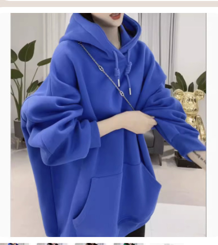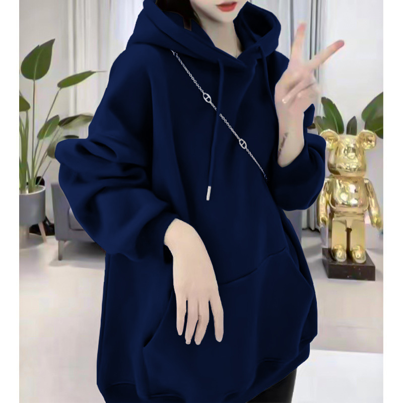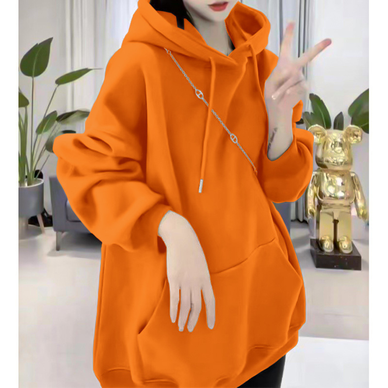 糖果色连帽卫衣女2023春秋新款宽松大码百搭设计感中长款上衣