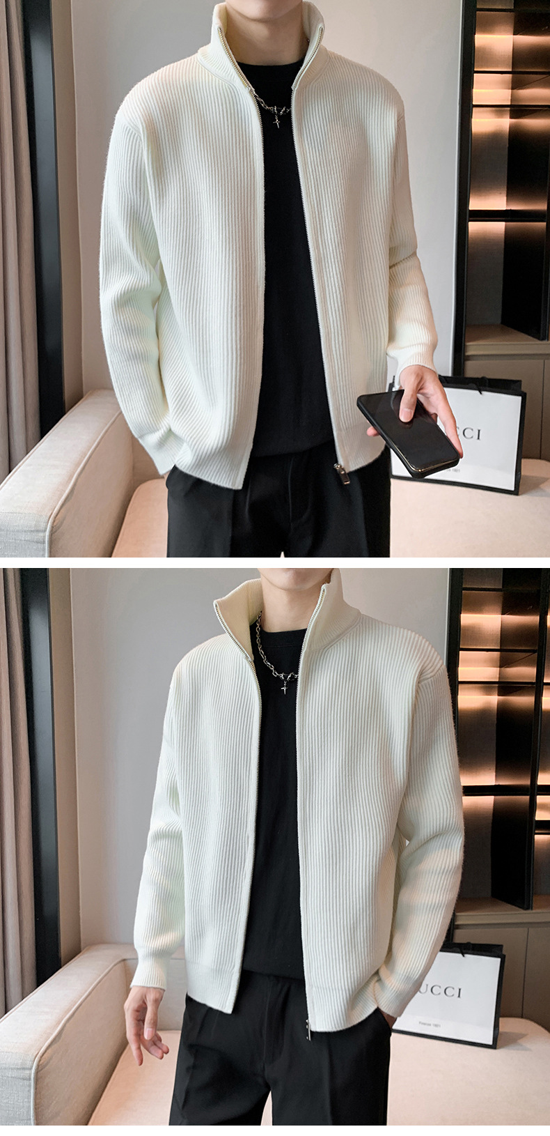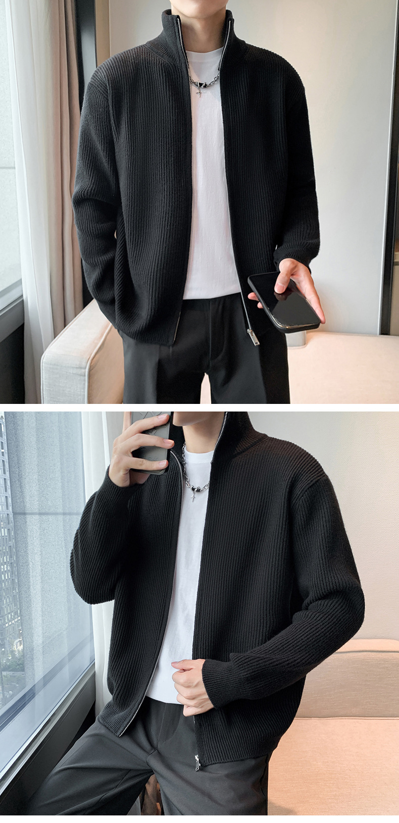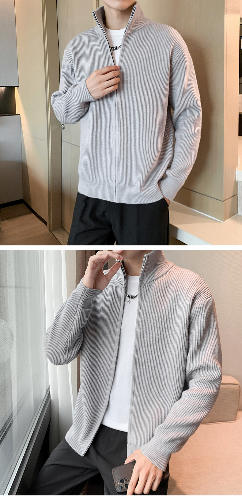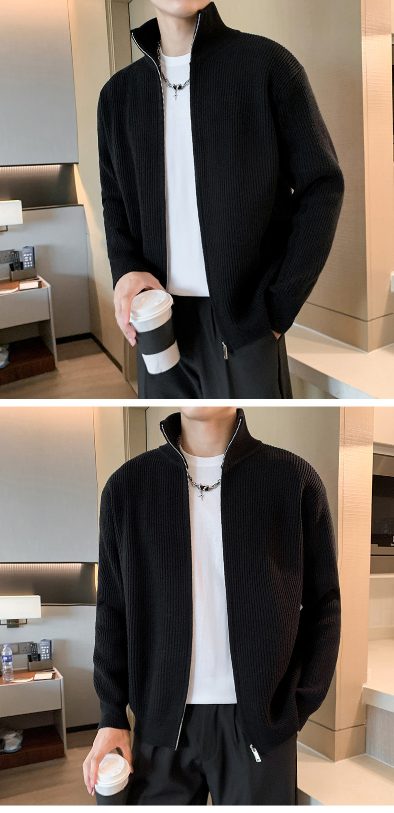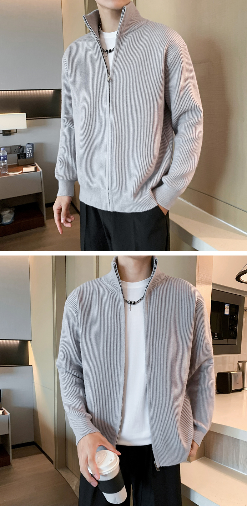 2024 봄과 가을 스웨터 카디건 얇은 니트 스웨터 남성용 한국 스타일 트렌디 솔리드 컬러 긴 소매 지퍼 남성용 재킷스토어 가기