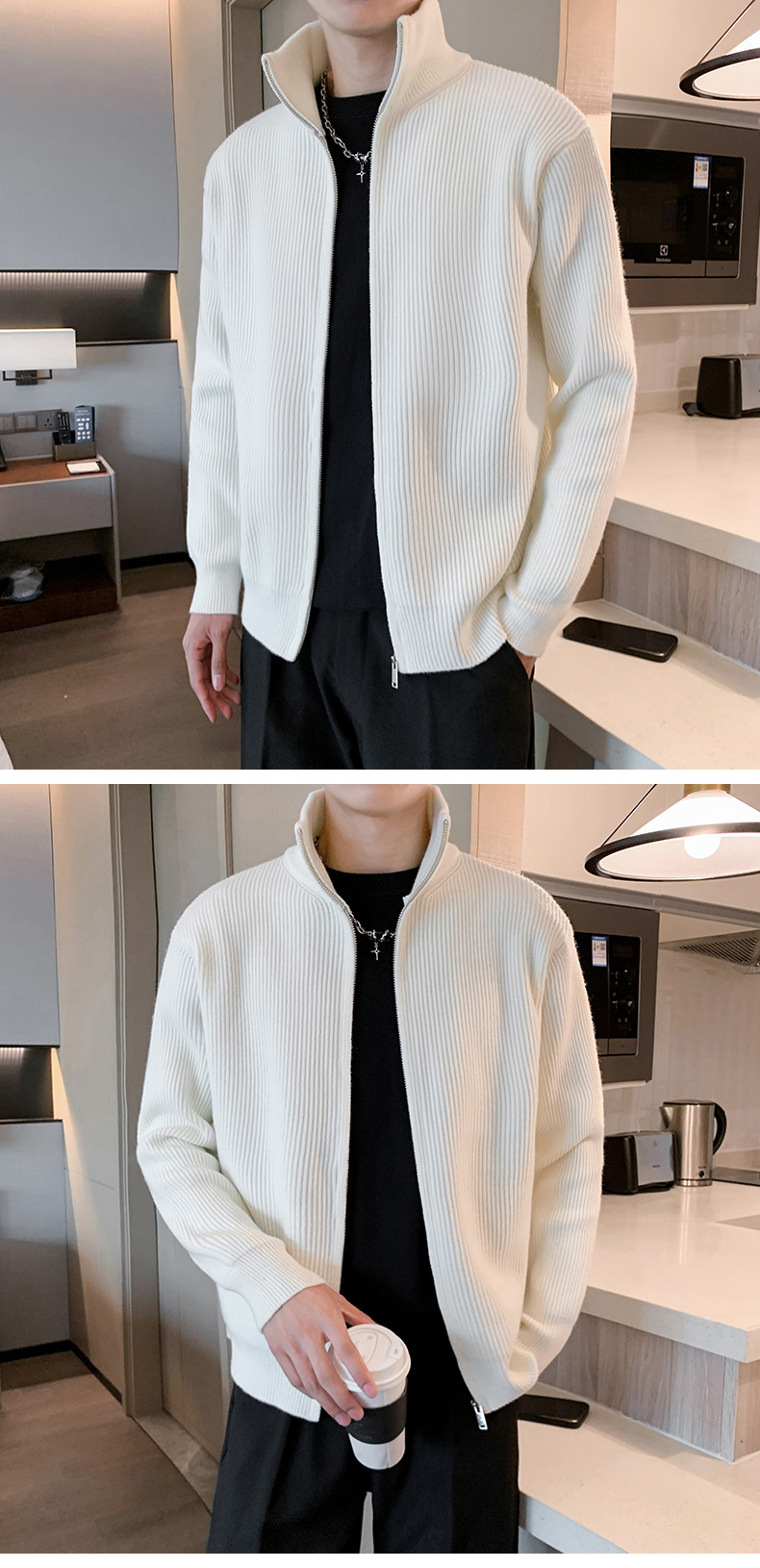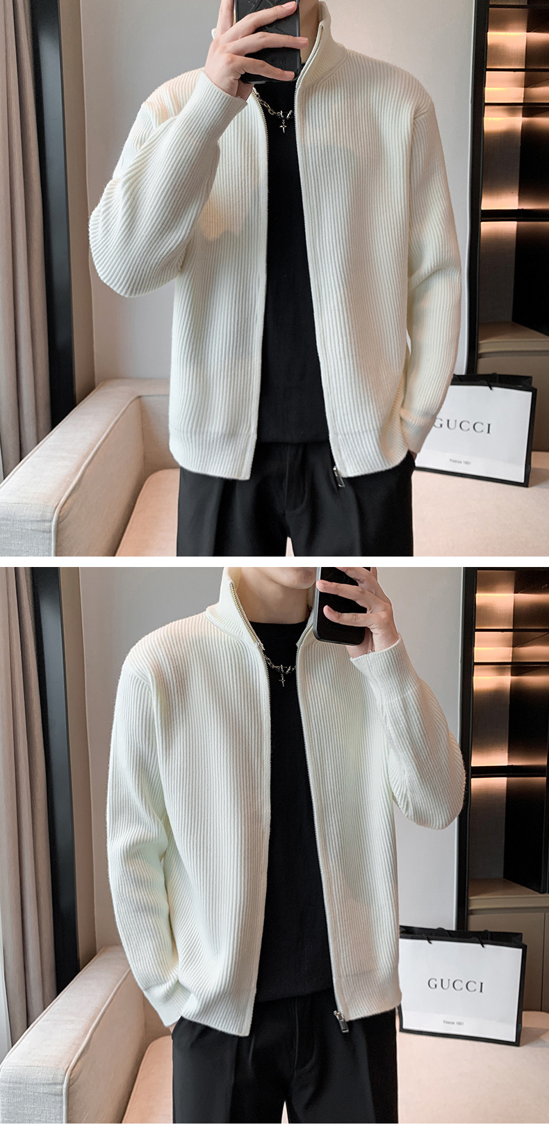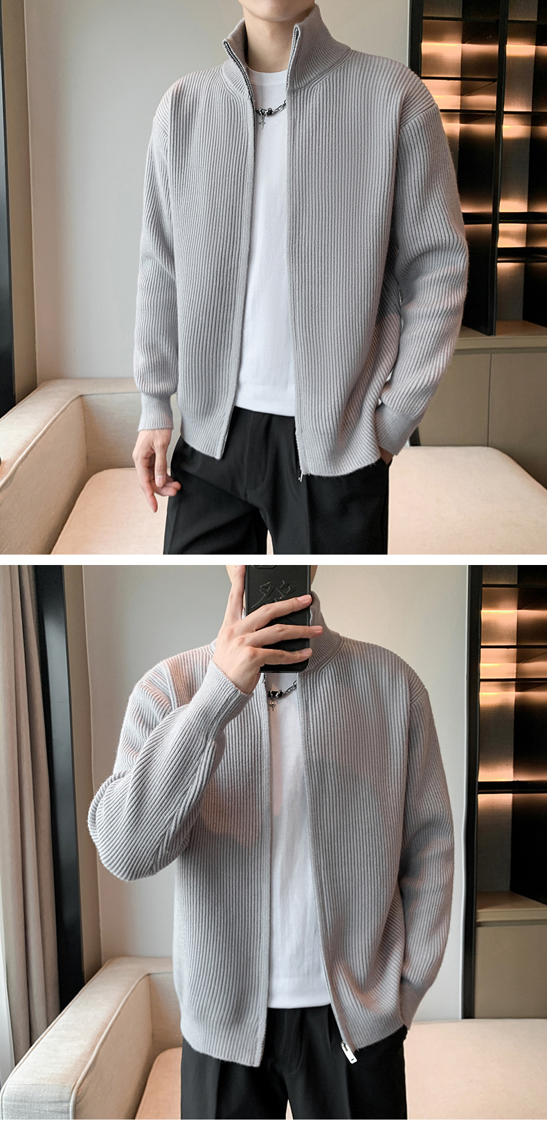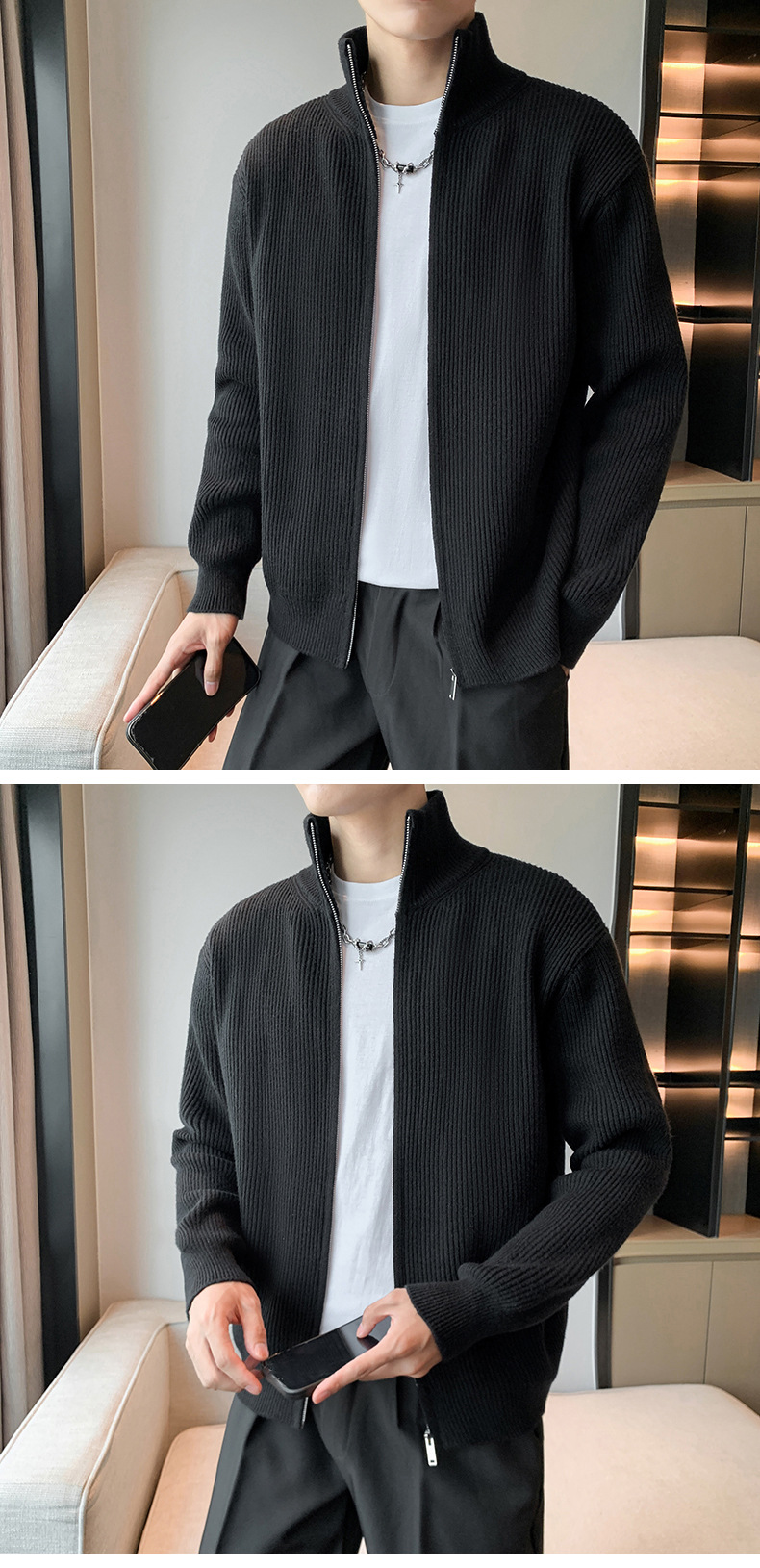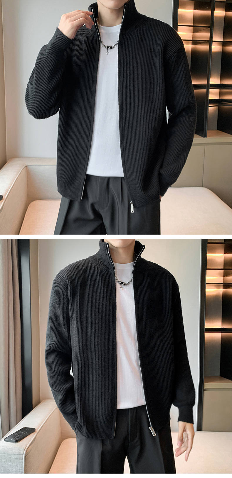 2024 봄과 가을 스웨터 카디건 얇은 니트 스웨터 남성용 한국 스타일 트렌디 솔리드 컬러 긴 소매 지퍼 남성용 재킷스토어 가기