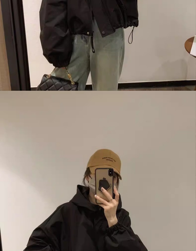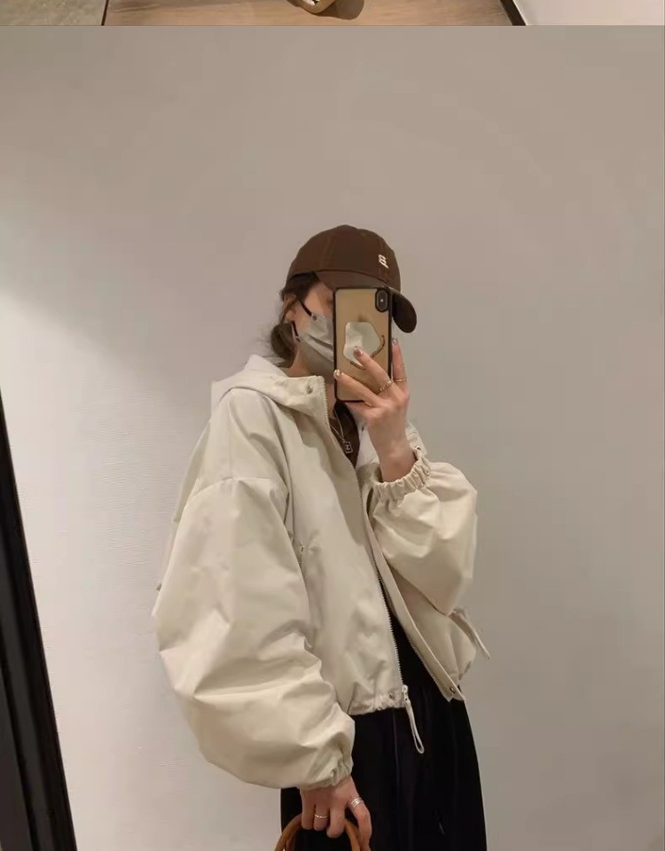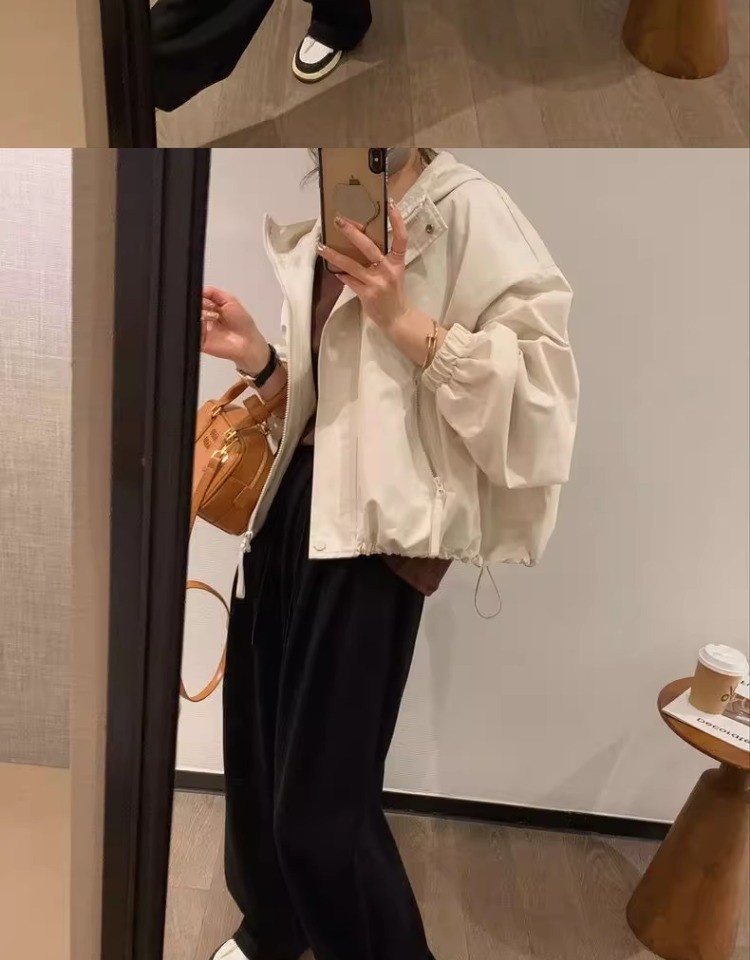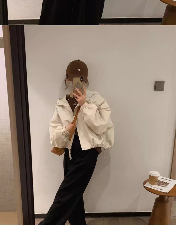 패션 툴링 러쉬 옷 느슨한 짧은 재킷 탑 2024 가을과 겨울 새로운 작은 후드 자켓 여성