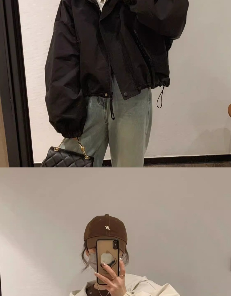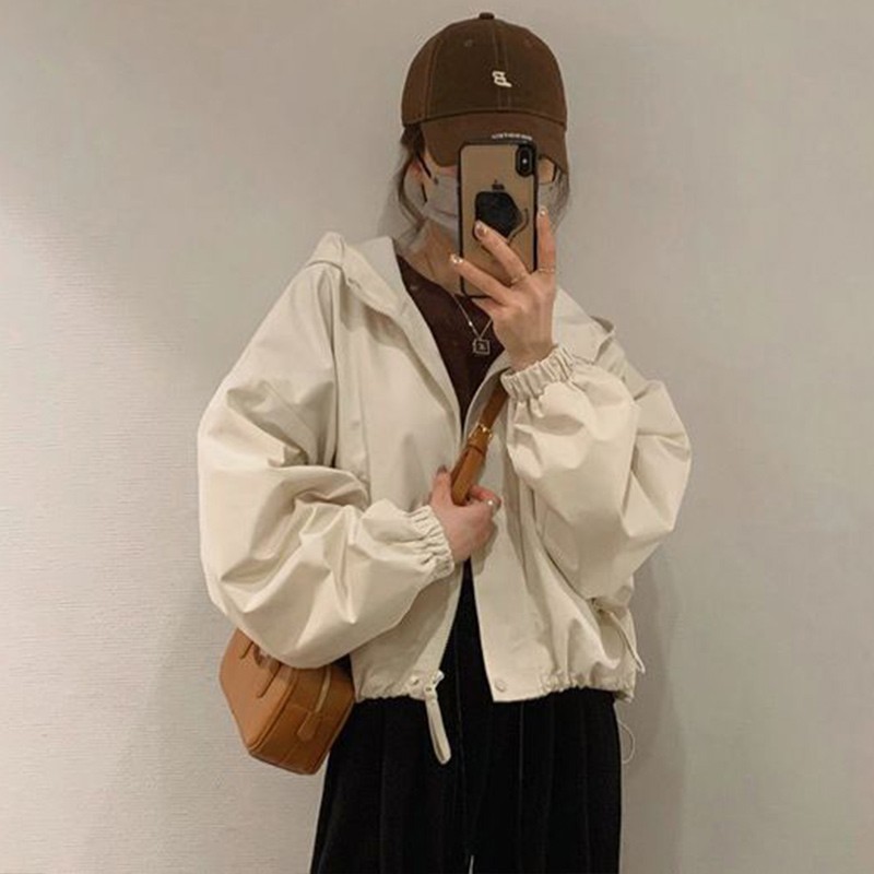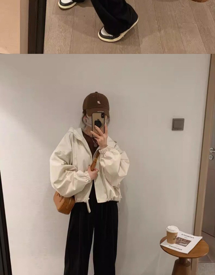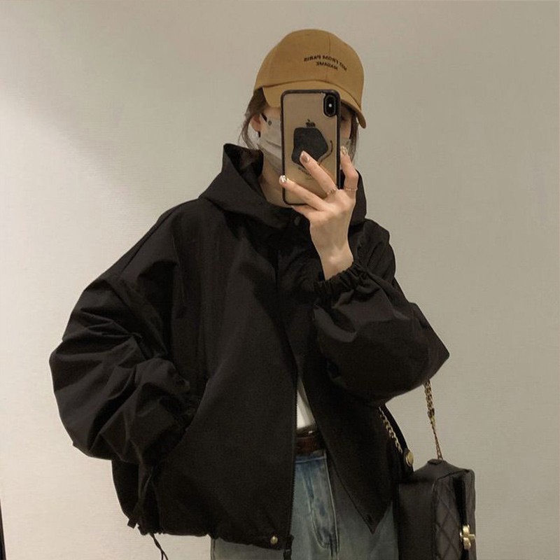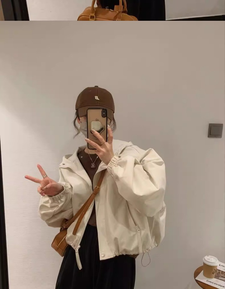 패션 툴링 러쉬 옷 느슨한 짧은 재킷 탑 2024 가을과 겨울 새로운 작은 후드 자켓 여성