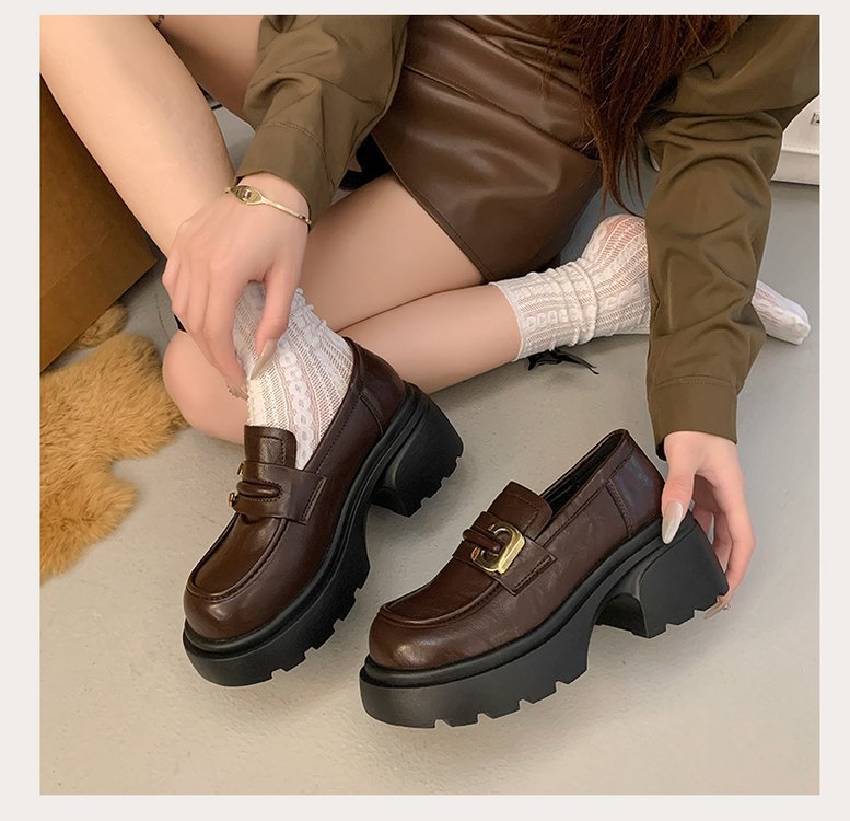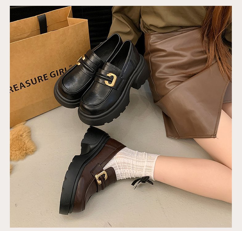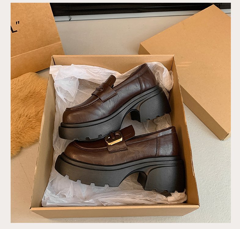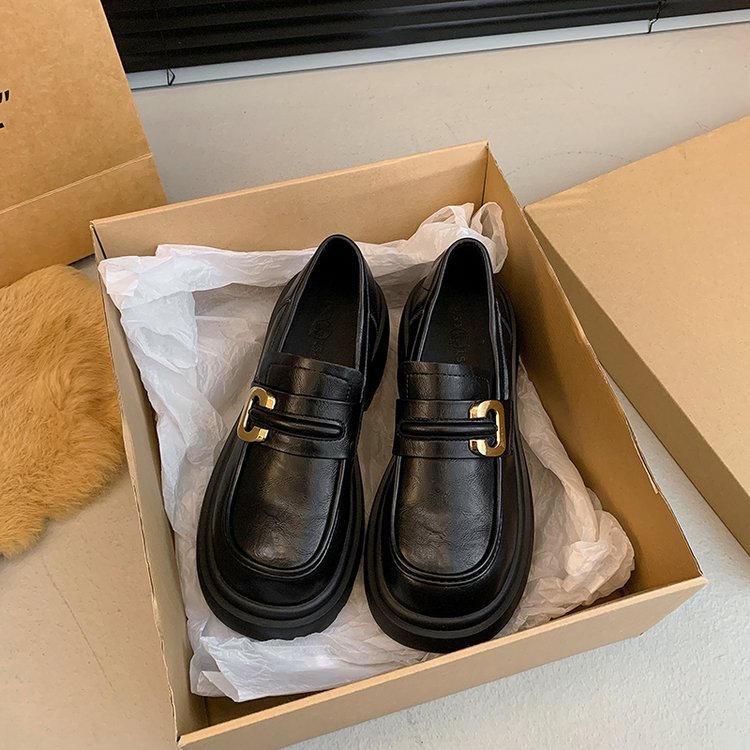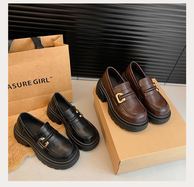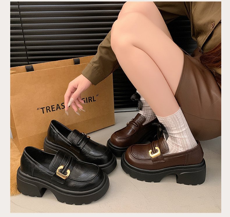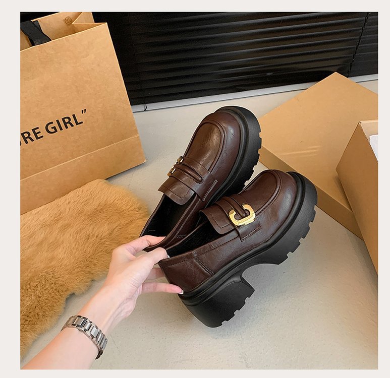 플랫폼 로퍼 여성 2024 가을과 겨울 새로운 빈티지 프랑스 스타일 싱글 레이어 신발 슬립 온 여성 신발 영국 스타일 JK 작은 가죽 신발스토어 가기