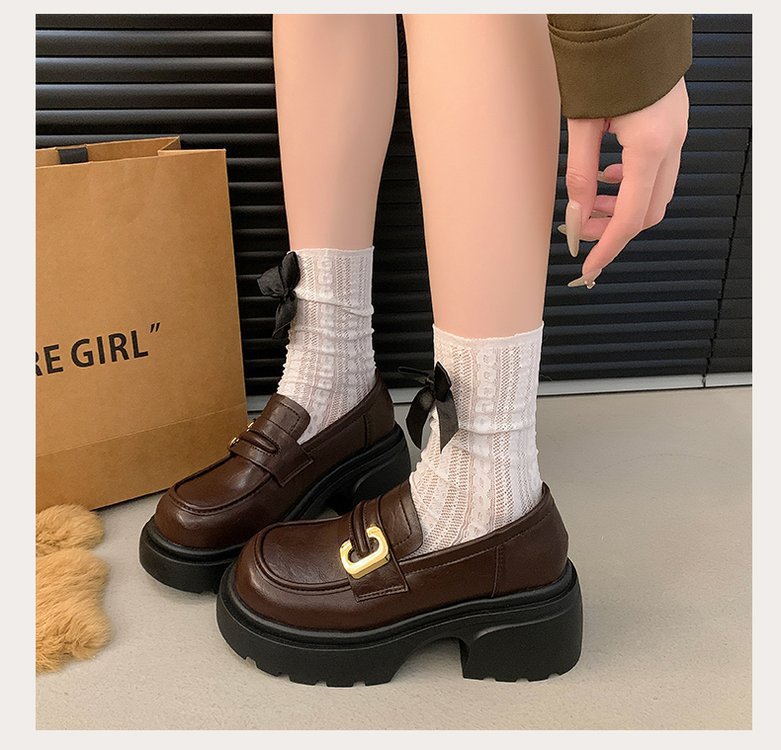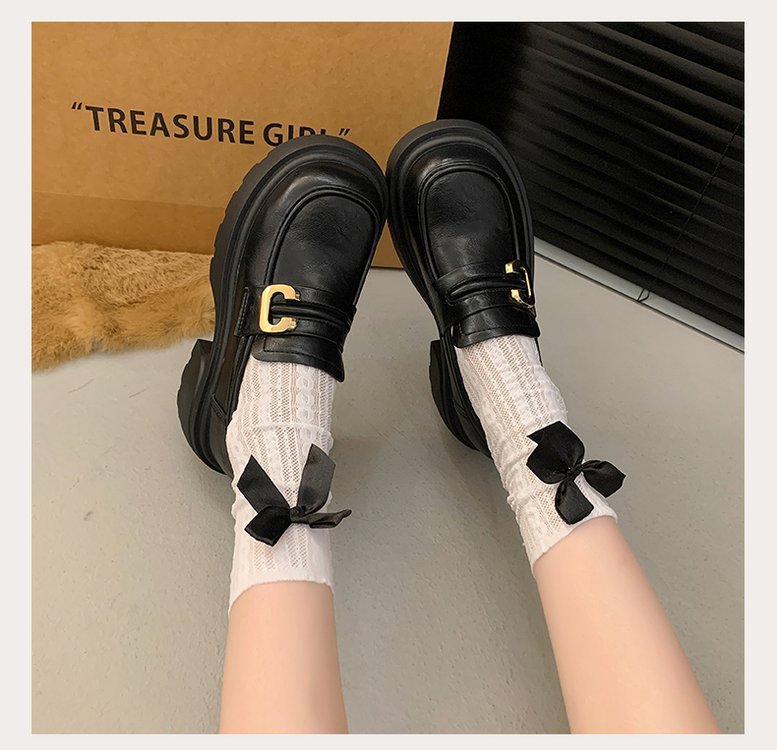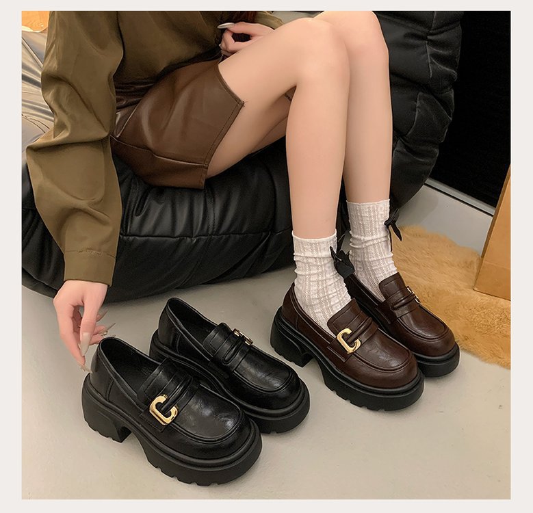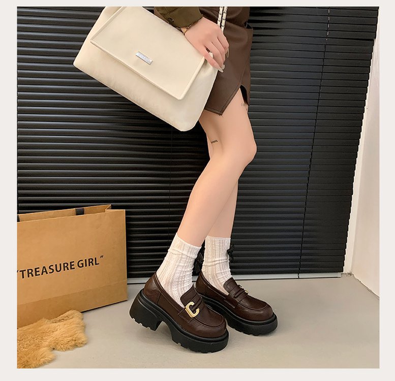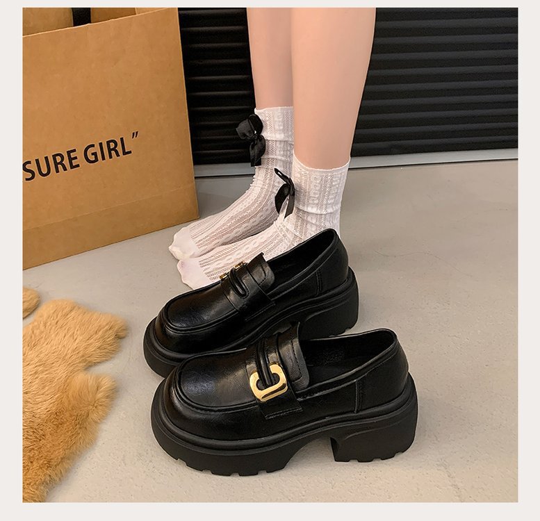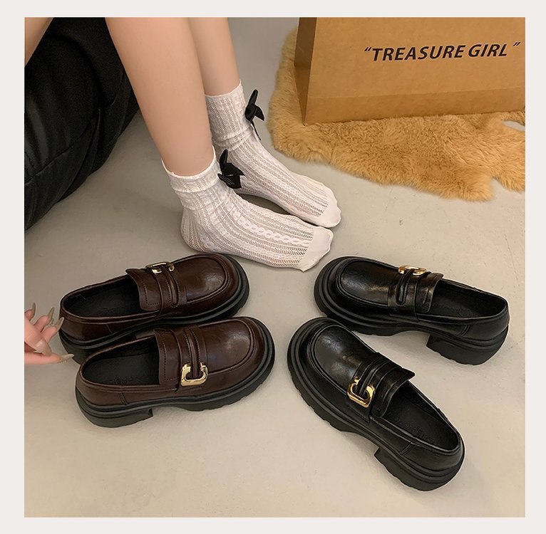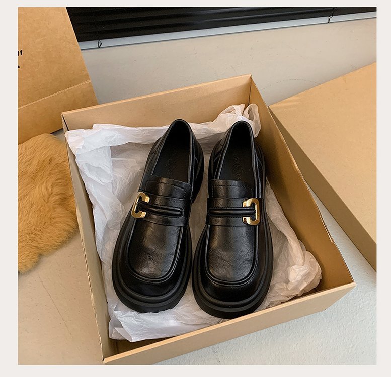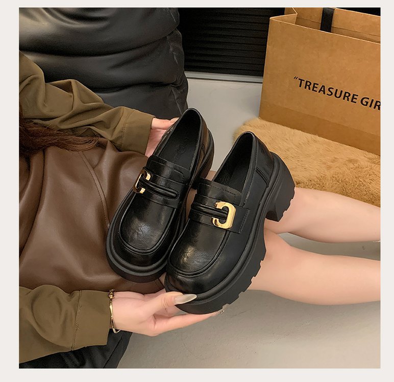 플랫폼 로퍼 여성 2024 가을과 겨울 새로운 빈티지 프랑스 스타일 싱글 레이어 신발 슬립 온 여성 신발 영국 스타일 JK 작은 가죽 신발스토어 가기
