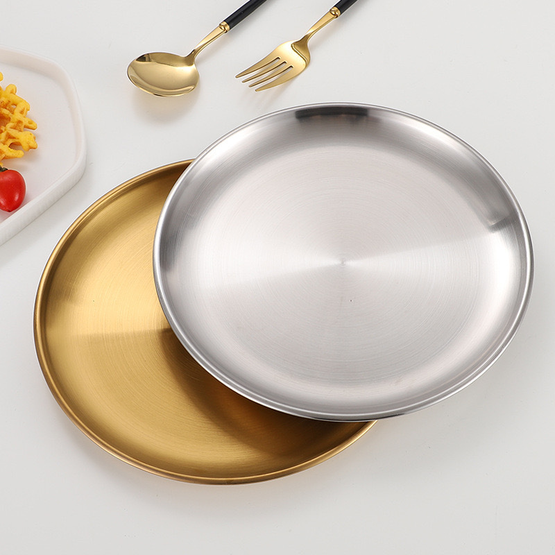 304 스테인레스 스틸 플레이트 한국 셀프 서비스 바베큐 플레이트 공예 트레이 케이크 디스크 웨스턴 푸드 플레이트 바베큐 과일 플레이트