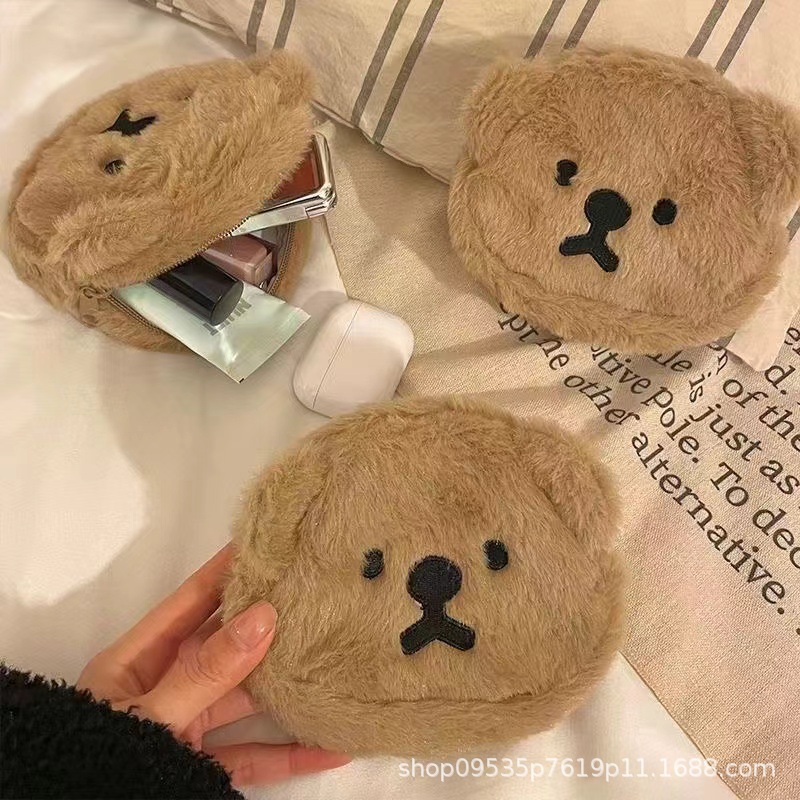창조적 인 봉제 곰 동전 지갑 잡화 휴대용 입 빨간 봉투 카드 가방 여성의 귀여운 헤드폰 가방 국경 도매스토어 가기