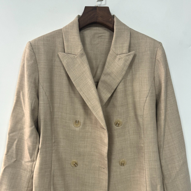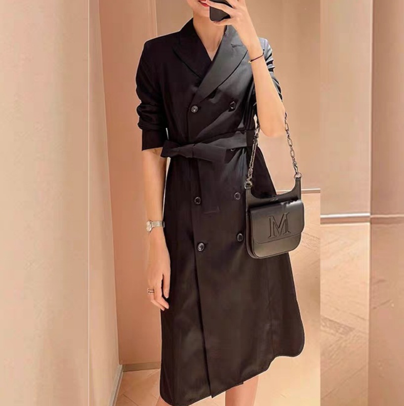 MAX2024 가을 새로운 클래식 하이 엔드 우아한 울 실크 더블 브레스트 웨이스트 원피스 세트