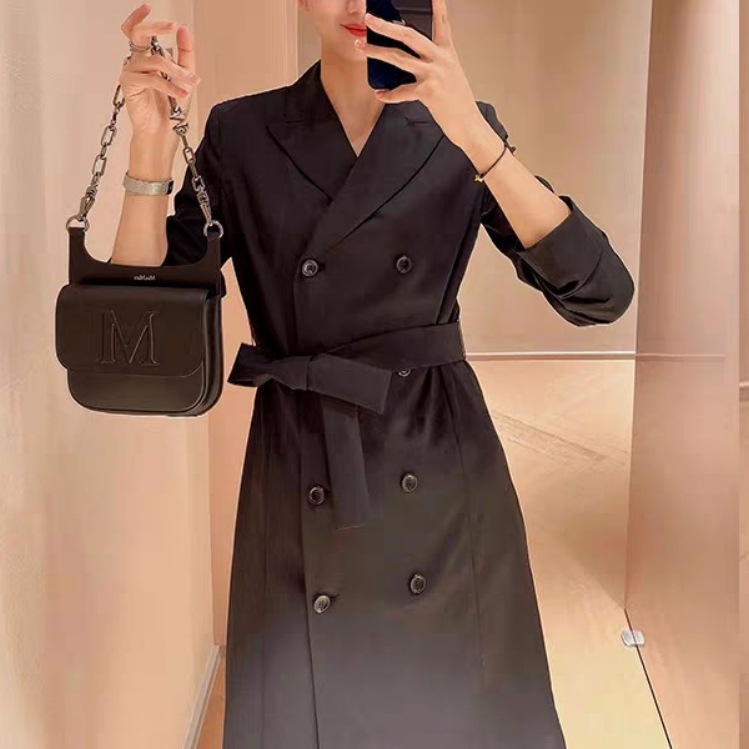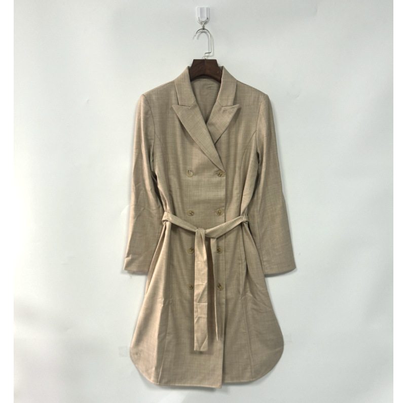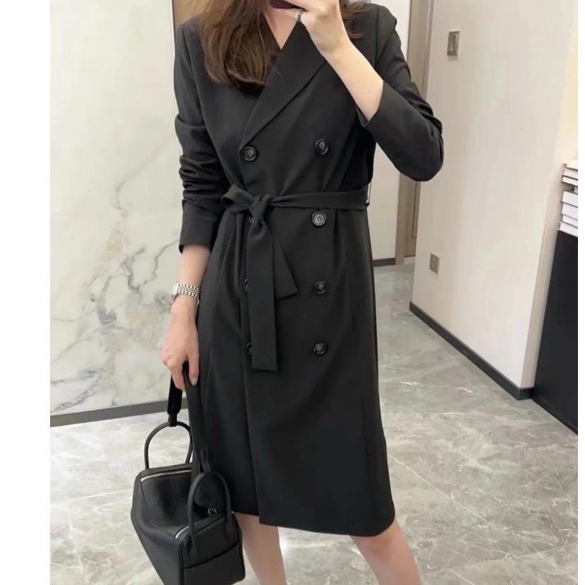 MAX2024 가을 새로운 클래식 하이 엔드 우아한 울 실크 더블 브레스트 웨이스트 원피스 세트스토어 가기